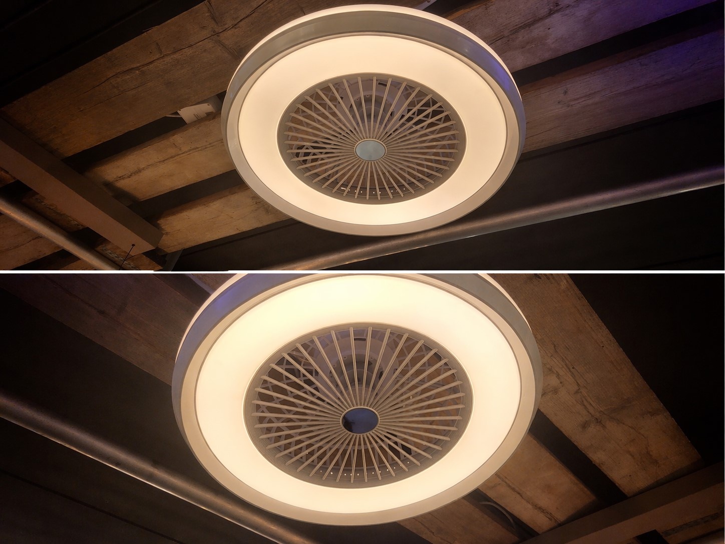 Nice fan with a diameter of 60 cm, 45 watt LED. Summer, winter, and timer function with 6 speeds, includes remote control with RGB colors. (5 watt) Wi-Fi function via Tuya app.
