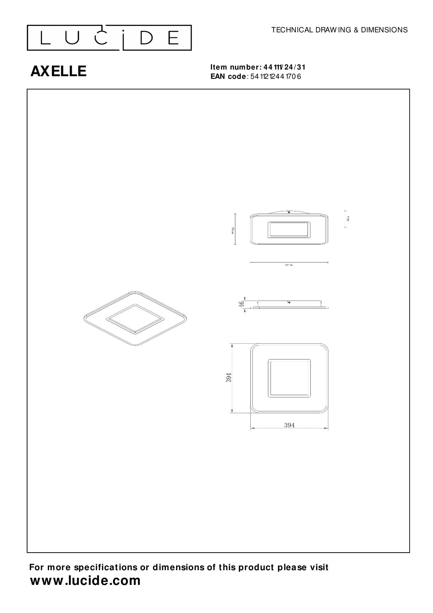 The minimalist design of this Axelle round or square ceiling lamp creates maximum effect. Axelle has a round plastic structure and fits in almost any room: from the hall to the sitting area to your bedroom. Due to its discreet look, this is also a suitable ceiling lamp for a business setting. The ceiling lamp is equipped with an integrated 24 watt LED lamp and spreads warm white light. Axelle has a diameter of almost 40 centimeters and is about 5 centimeters high or 39.4 x 39.4 cm in the square version.