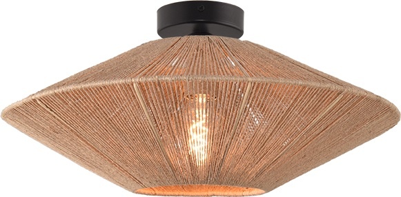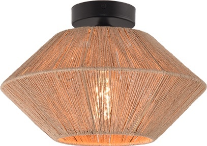 This beautiful Bicono ceiling lamp is mounted on a black, round ceiling plate, 11 cm long. It is 21 cm high. It is made of a rope ball with a diameter of 35, 50, or 65 cm. Suitable for LED bulbs with an E27 socket.