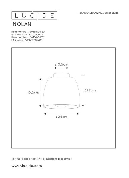 Nolan ceiling lamp from the Lucide brand, with a diameter of 24 cm. Read more