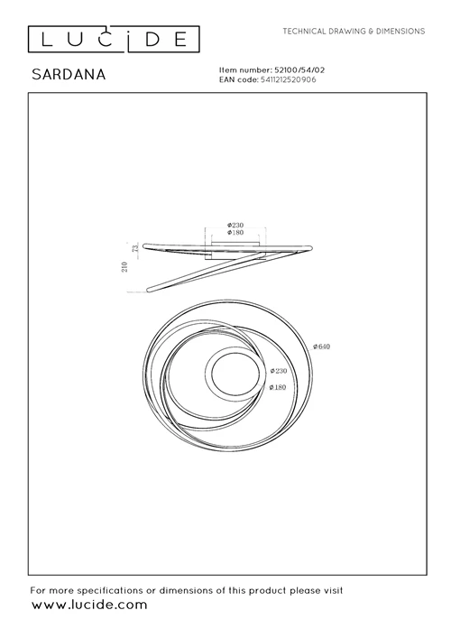 Sardana ceiling lamp in matte gold-brass with a modern design. Diameter: 64 cm. This Sardana ceiling lamp can be dimmed with an external wall dimmer (not included). Mounting plate: 23 cm x 23 cm x 7.3 cm.