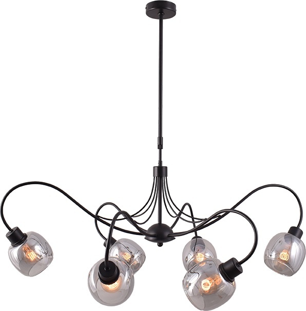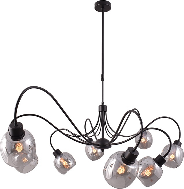This modern Celano pendant lamp, with 6 or 8 lights, is a beautiful pendant lamp in black metal with smoked gray glass. The glass has a refined diameter of 12 cm. This Celano pendant lamp is not only a functional lighting fixture but also a stylish addition to any room. Height adjustable. Celano series