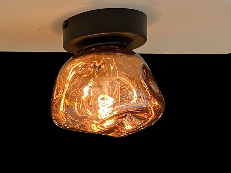 Cloud ceiling lamp. The glass is a single piece and is screwed on. Also available in other colors (smoke gray, gold, or red glass). Glass diameter: 28 cm and ceiling plate diameter: 14 cm.