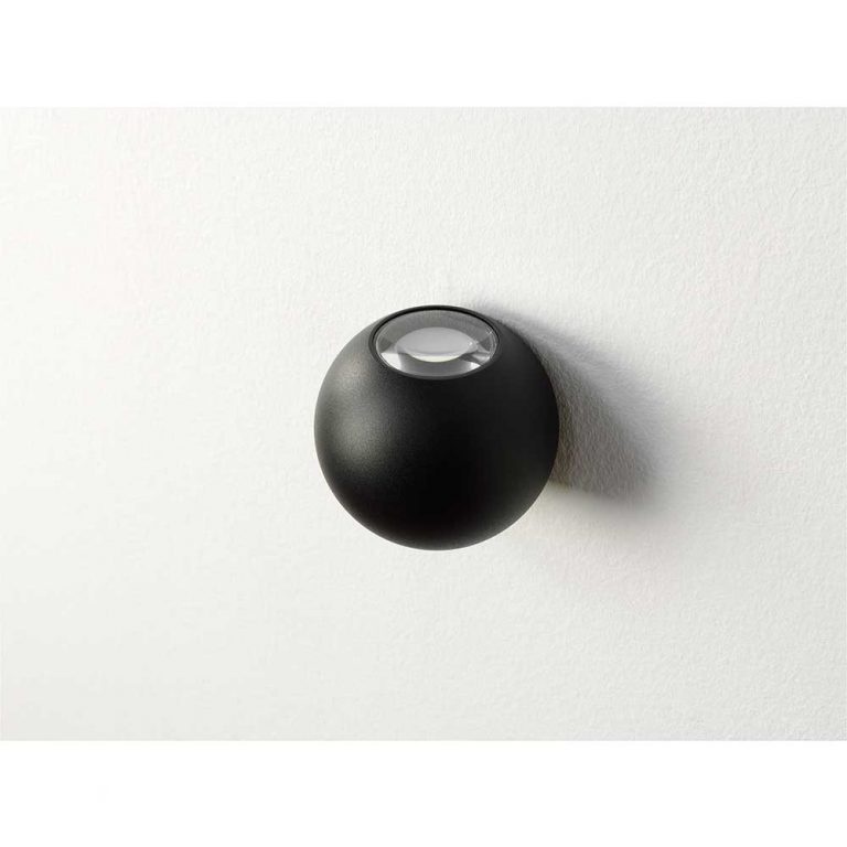 The Denver is a beautiful, subtle aluminum or black wall lamp with a spherical shape, with a diameter of 10 cm. The lamp features integrated 2 x 4.5 watts. Both the top and bottom have a convex lens.