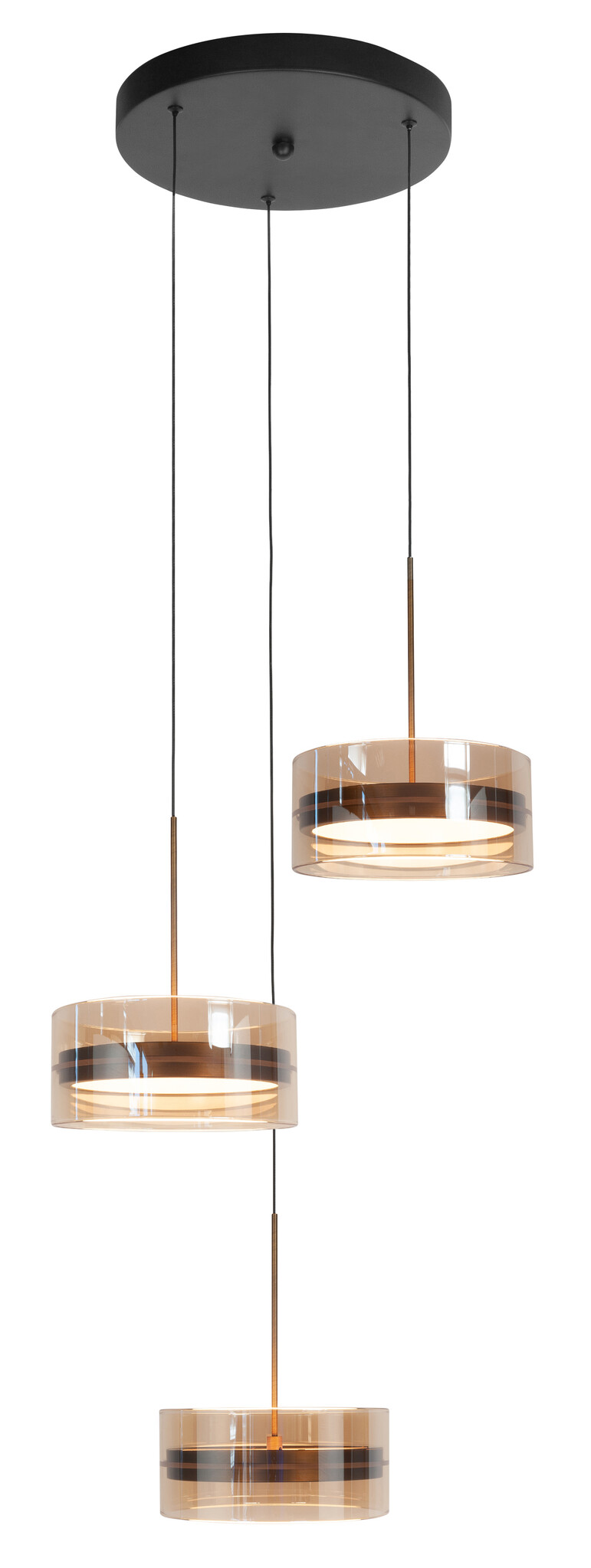 The Enzo pendant lamp has a black round plate with 3 amber (transparent) glasses. Read more