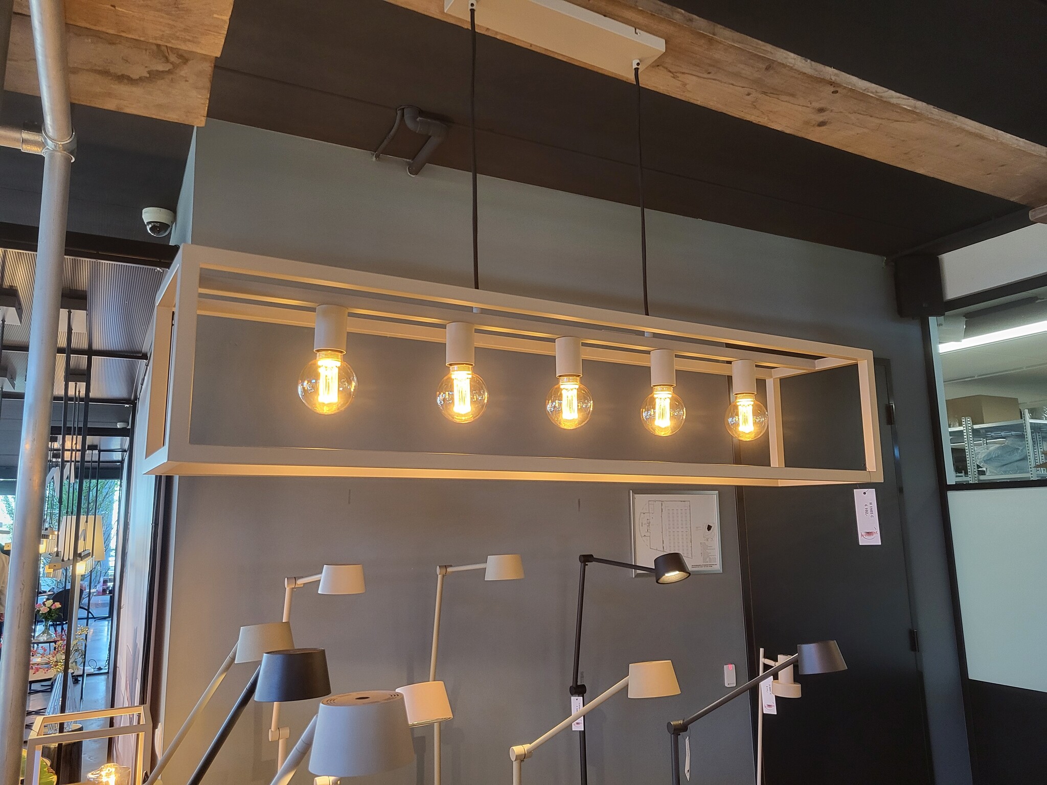 A sturdy yet rustic pendant lamp from the Esteso series will soon be available in a sand color. The pendant lamp has a sand-colored frame. Length: 120 x 25 cm. Height-adjustable. Suitable for 5 x 5-watt LED bulbs .