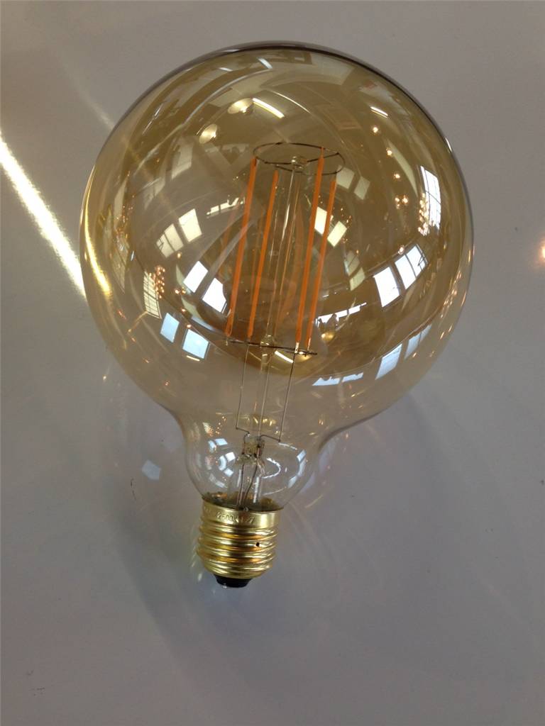Filament LED Globe 125mm with E27 fitting. 4-watt LED with a light output of 34 watts. The bulb has a warm light color of 2400 Kelvin/380 lumens. Not dimmable .