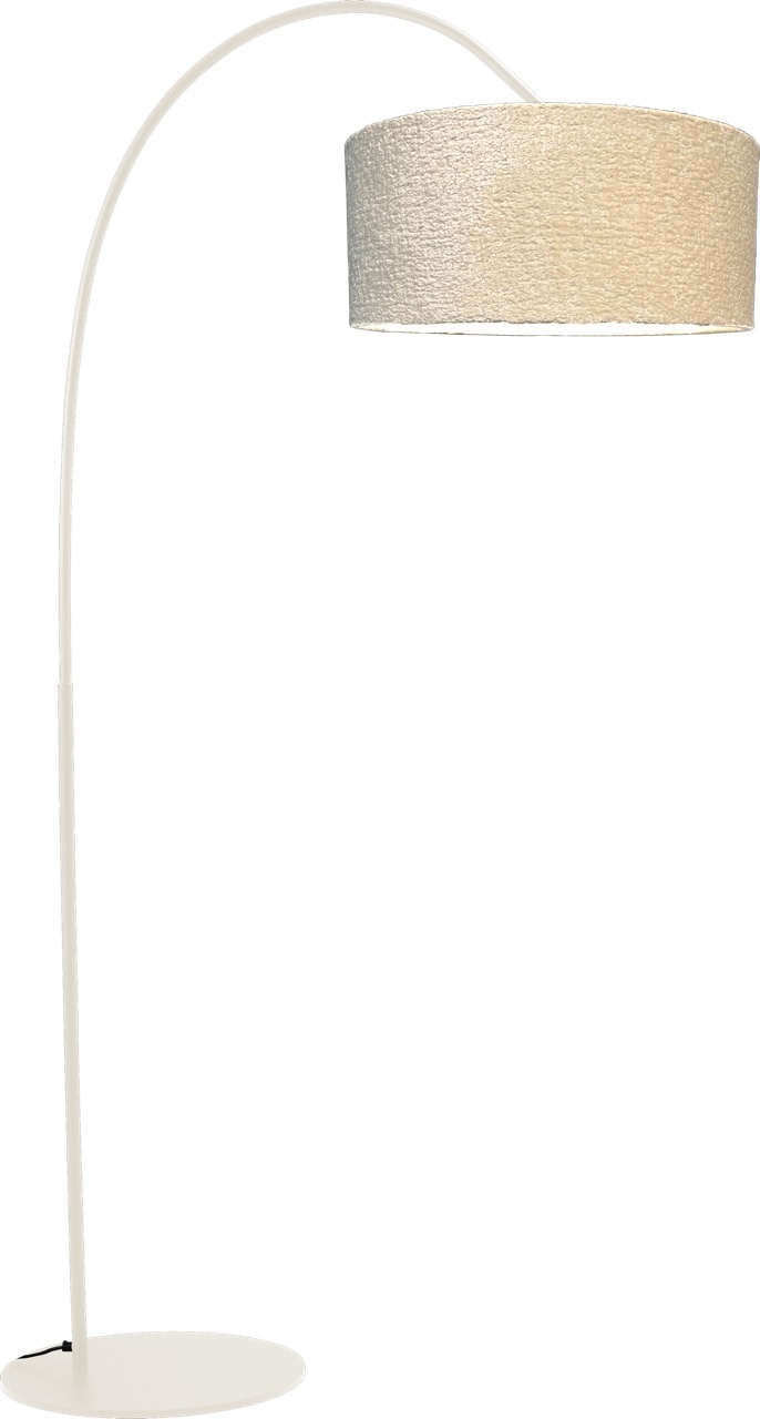 Beautiful Arch lamp with a pearl white fixture. It is 183 cm high and 68 cm wide. The shade diameter is 52 x 52 cm and it is 25 cm high. This is a Boris shade in ecru on white. The base plate diameter is 42 cm. (RAL 1013)