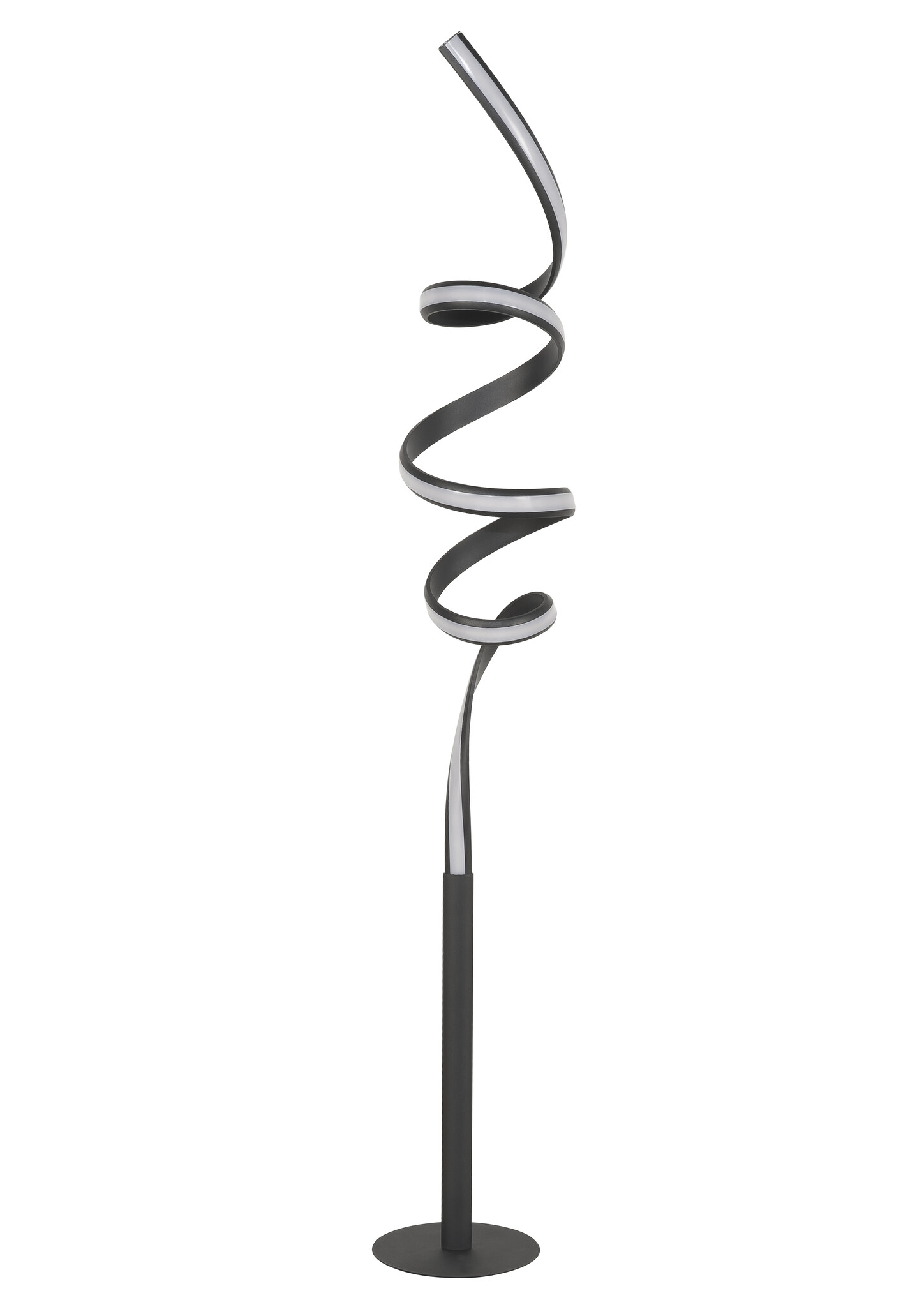 This modern Arte floor lamp features a straight tube with a swirling LED at the top. It's 158 cm high and dimmable with a built-in dimmer.