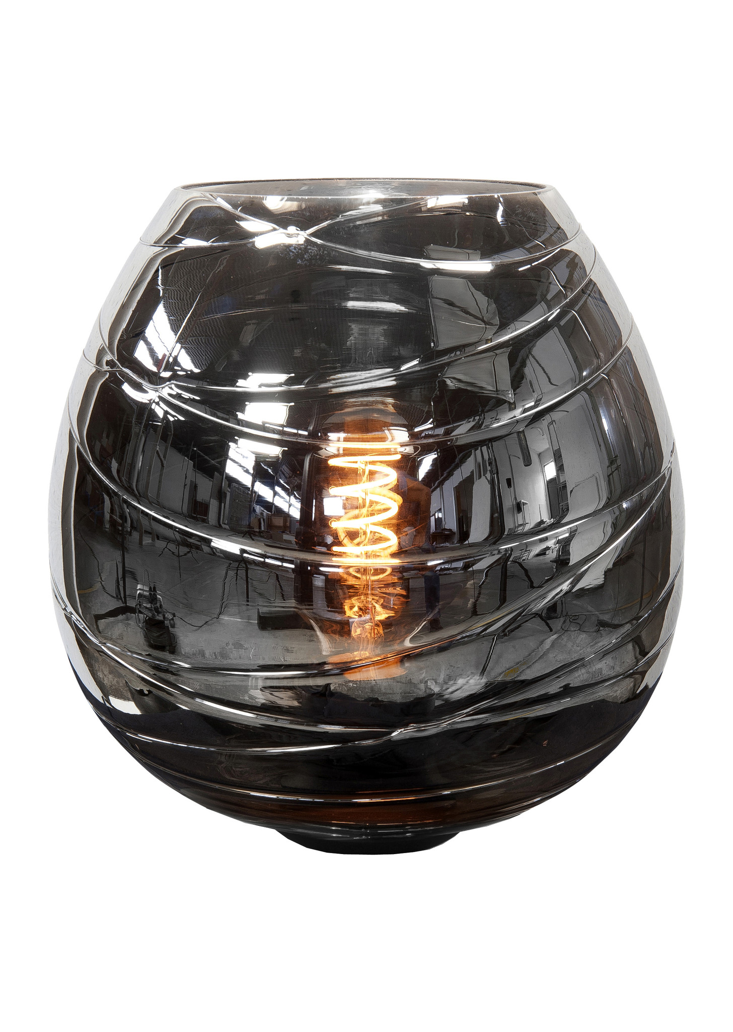 The Fantasy Apple floor lamp has black square legs with beautiful smoked glass on top. Read more