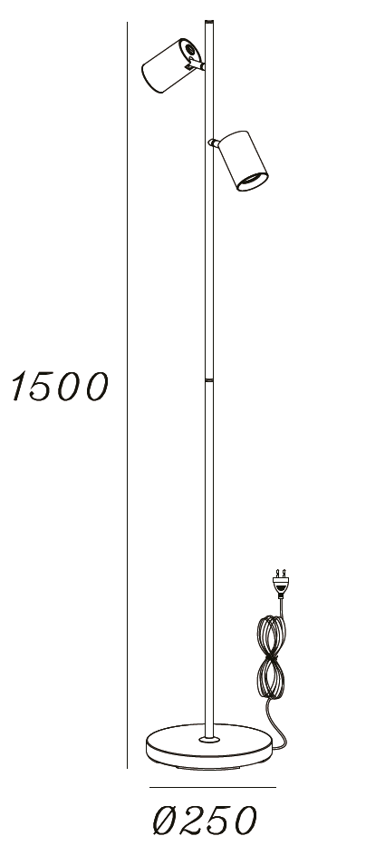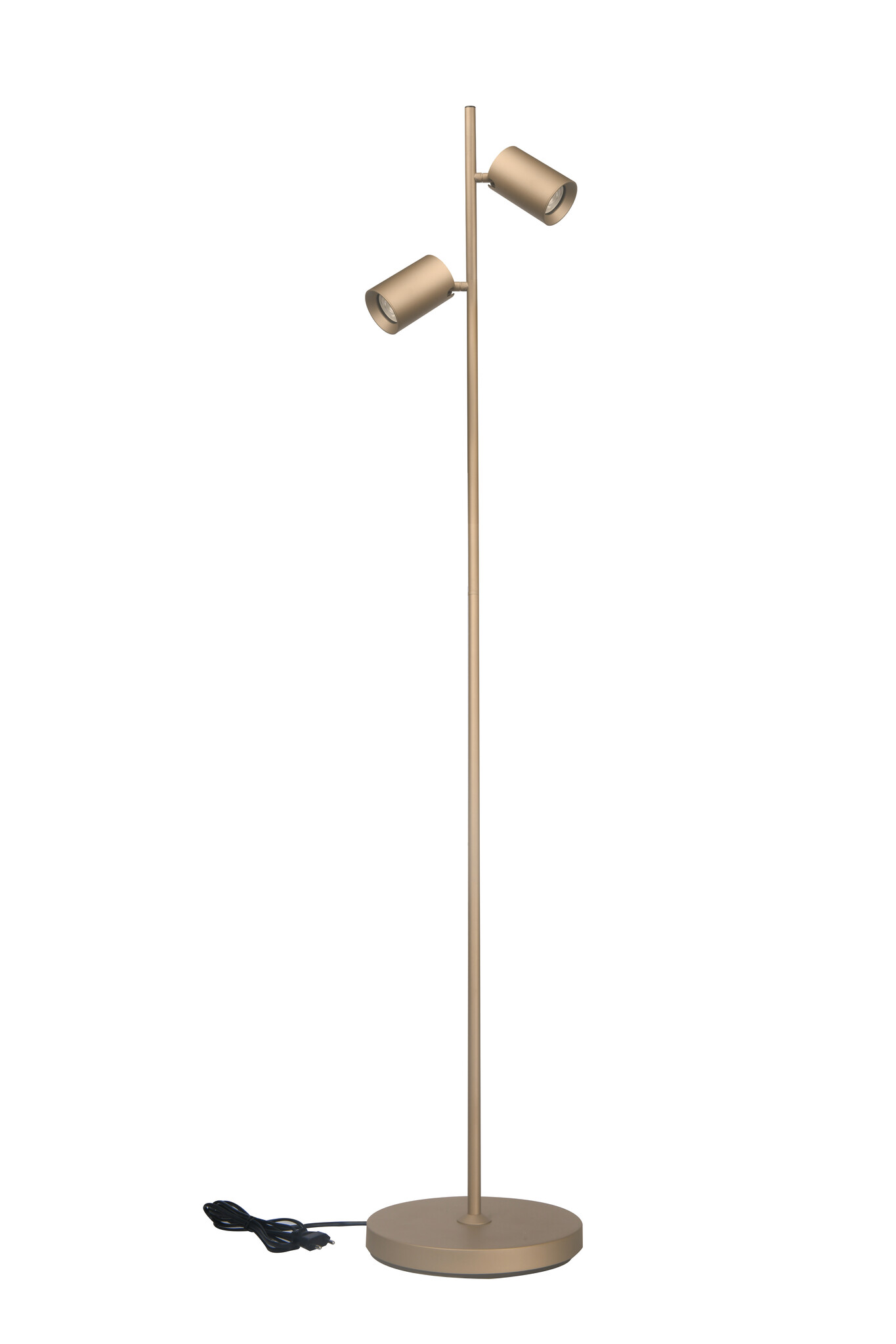 The Megano is a metallic black or champagne-colored floor lamp with 2 adjustable and tilting spotlights. Height 150 cm. The shades are completely black, also on the inside. It can accommodate 2 bulbs with a GU10 fitting. ( excl. ) Incl. black insert. Inserts are also available separately in white and gold. (surcharge €6.95) With a switch on the reflector. They can be switched on independently of each other, with an on/off switch on the spotlight itself.