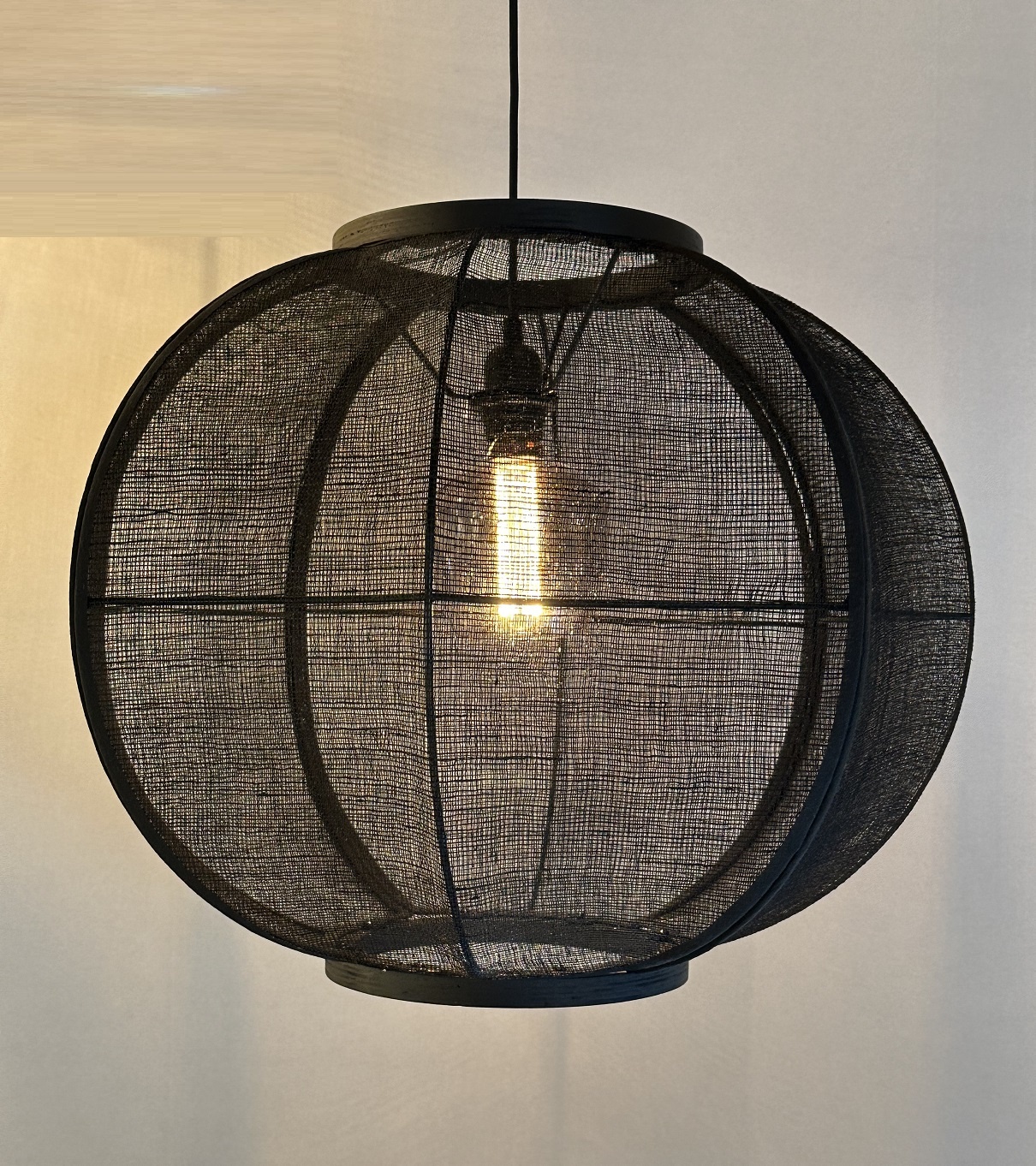 Fabric pendant lamp in black or sand, with a diameter of 48 cm. Adjustable height.