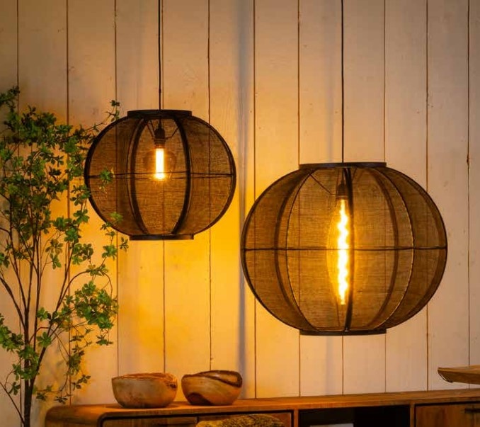Fabric hanging lamp in black or sand colour with a diameter of 58 cm. Read more