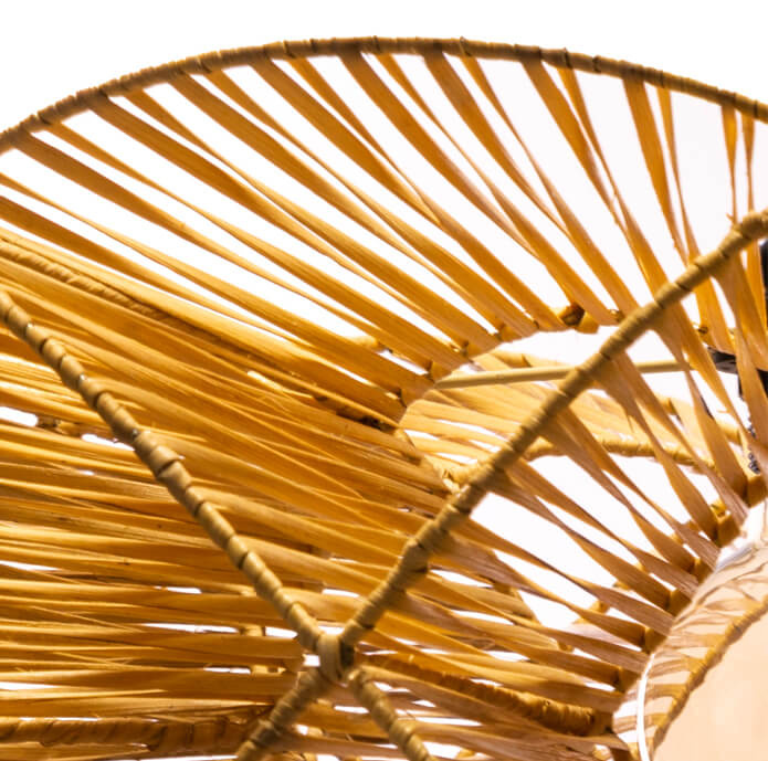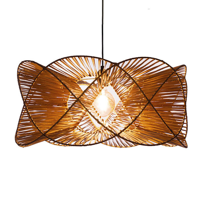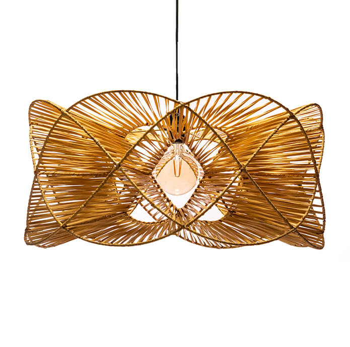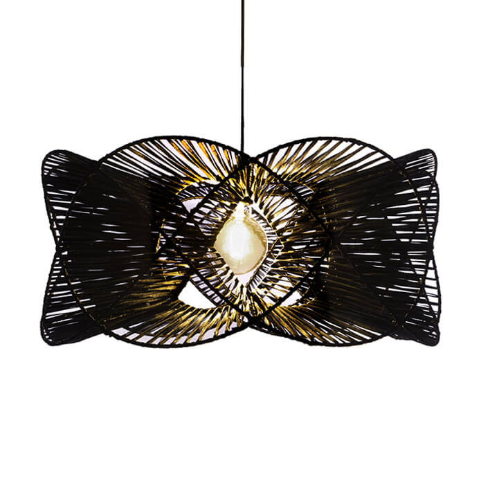 Infinity pendant lamp, 60 cm, made of woven wicker in natural or black. This Infinity pendant lamp has a diameter of 60 cm. Recommended light source: dimmable filament LED bulb.