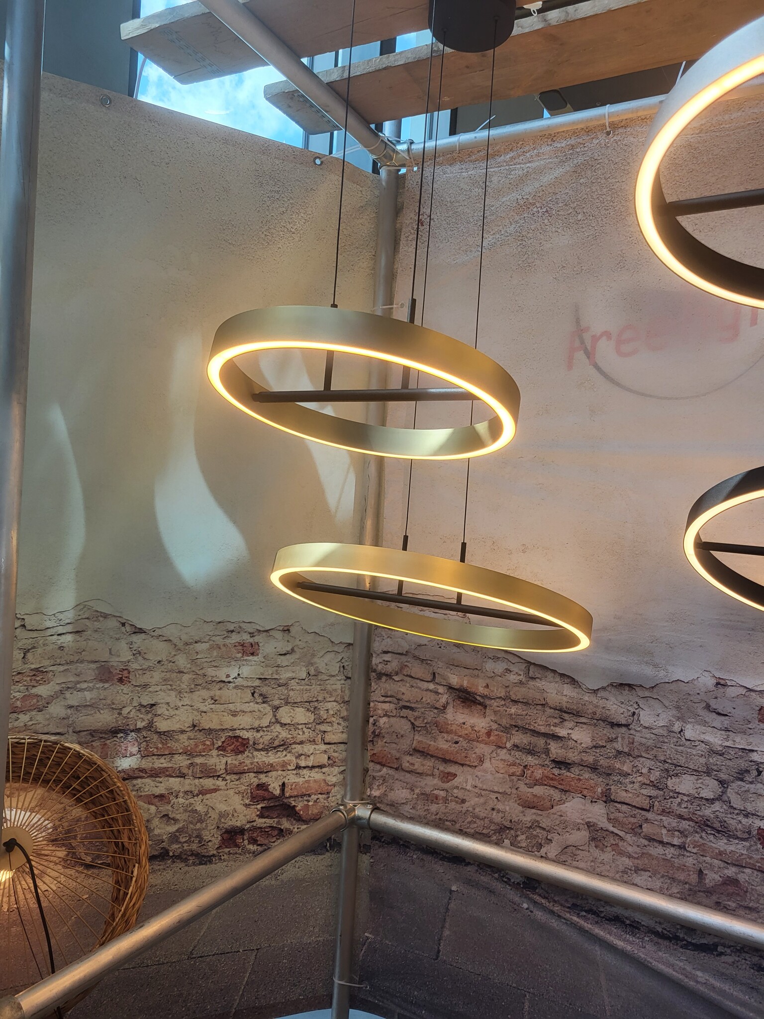 Modern pendant lamp Livello round with Led. Completely black or black with matt gold. Dimmable via an external dimmer (excl.) Available in diameter 40 or 60 cm. 2700 Kelvin.
