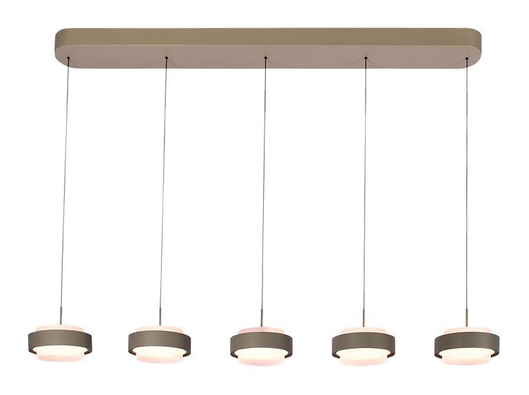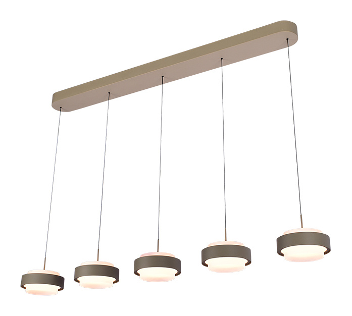 Bring style and functionality together in your interior with this beautiful Puleggia pendant lamp. This 5-light LED pendant lamp, 140 cm long, combines modern design with practicality. Equipped with a clever pulley system, you can easily adjust the lamp's height to create the perfect ambiance in any room. The elegant shades provide a warm, atmospheric light, ideal for the dining room, living room, or even a stylish workspace. Thanks to the energy-efficient LED technology, you'll enjoy not only beautiful light but also a sustainable choice. Dim to warm.