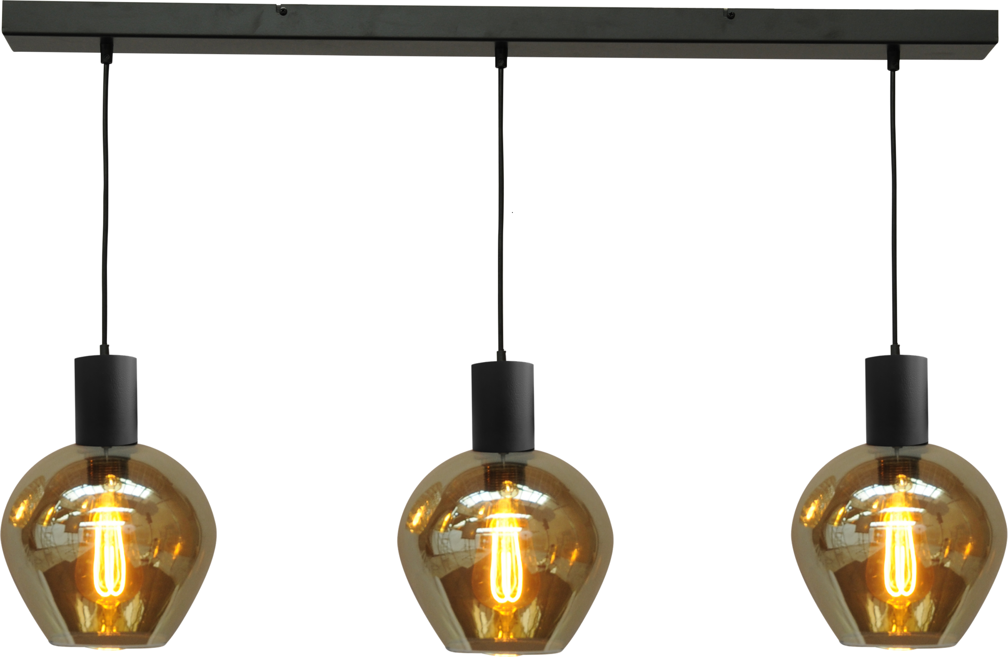 Bounty Smoke 3-light pendant lamp with glass hanging from a black bar measuring 100 x 8 cm. Read more