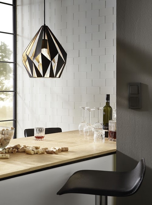 Carlton 1 pendant lamp in vintage style by Eglo with a black exterior and a gold color on the inside. Diameter 31 cm. When the lamp is on, the gold color comes into its own on the inside.