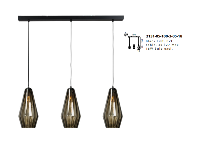 Pendant lamp Diamond 3 lights from brand Master Light with smoke glass. Read more