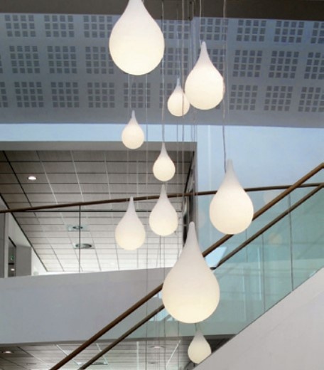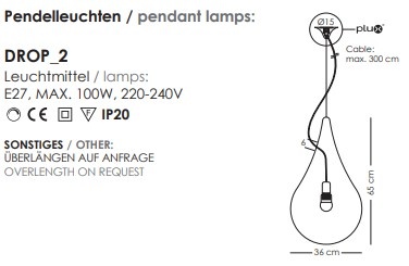 The drop pendant lamp drop 2 is designed by Hopf & Wortman. This drop lamp of aesthetic design has the extraordinary symbolism of light and water. Pendant lamp Drop 2 enhances any room with its pleasant warm light and seems to float weightlessly in the air. This creates a unique atmosphere. Diameter 36 cm. (height 65 cm) The drop lamp is made of durable plastic that is fully recyclable. Ceiling plate has a diameter of 15 cm.