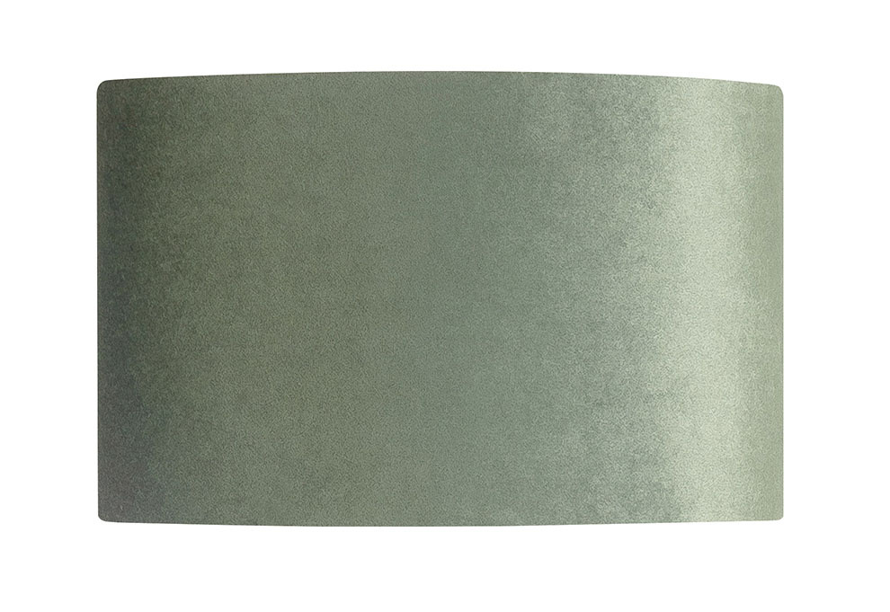 Now in the collection: velvet oval shades in olive green/gold. (Olive exterior, gold interior.) The shade has a ring for a standard E27 fitting. Dimensions are diameter x height.