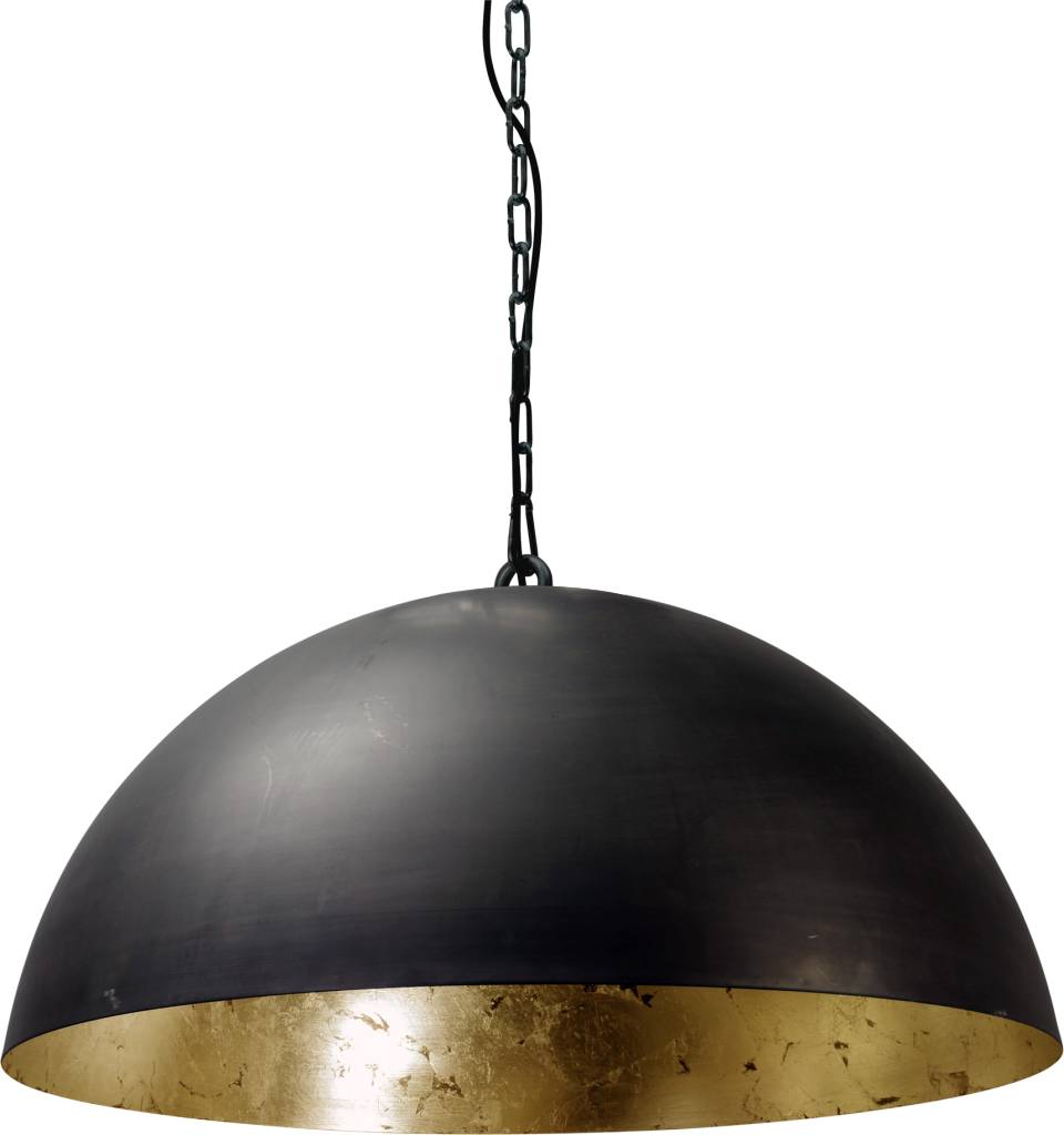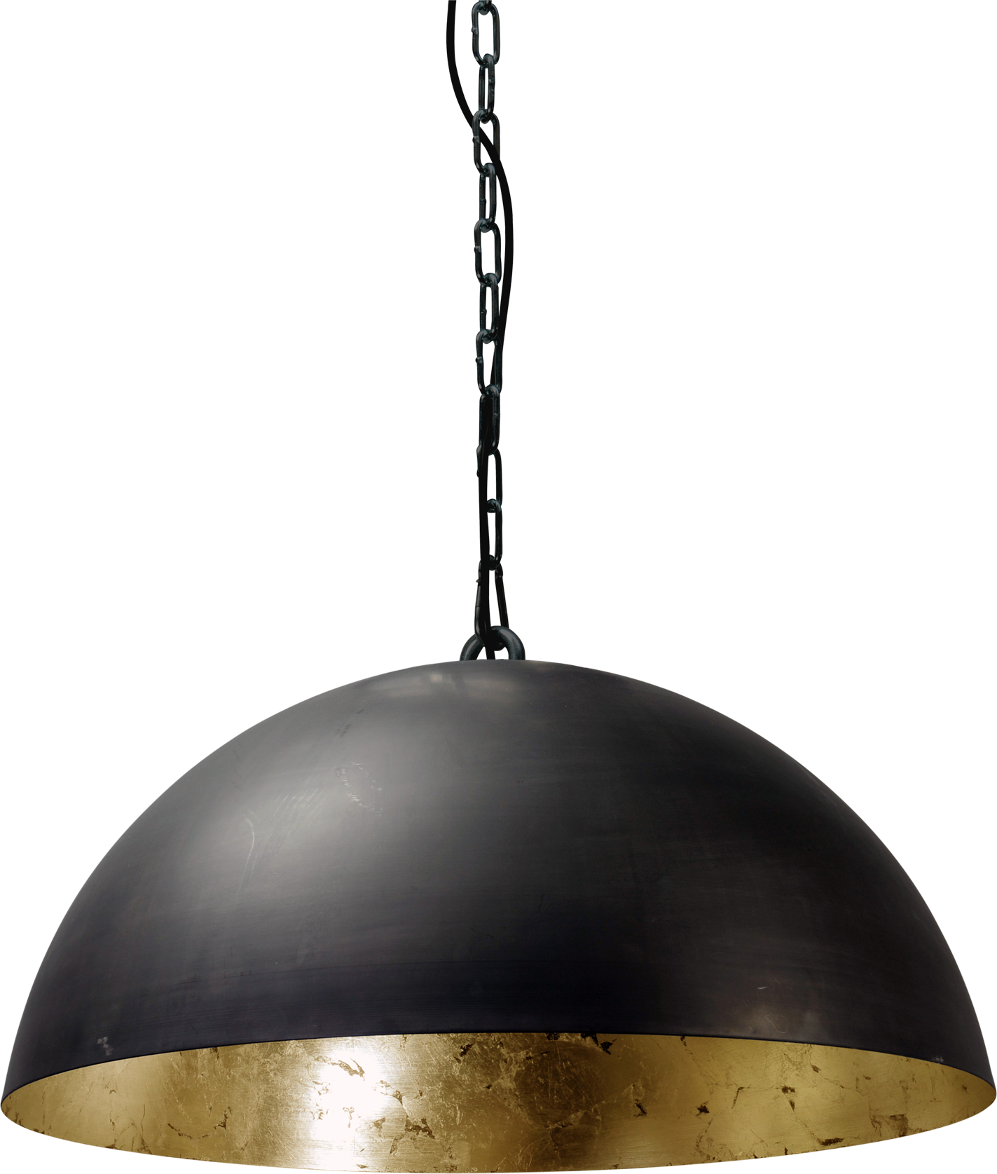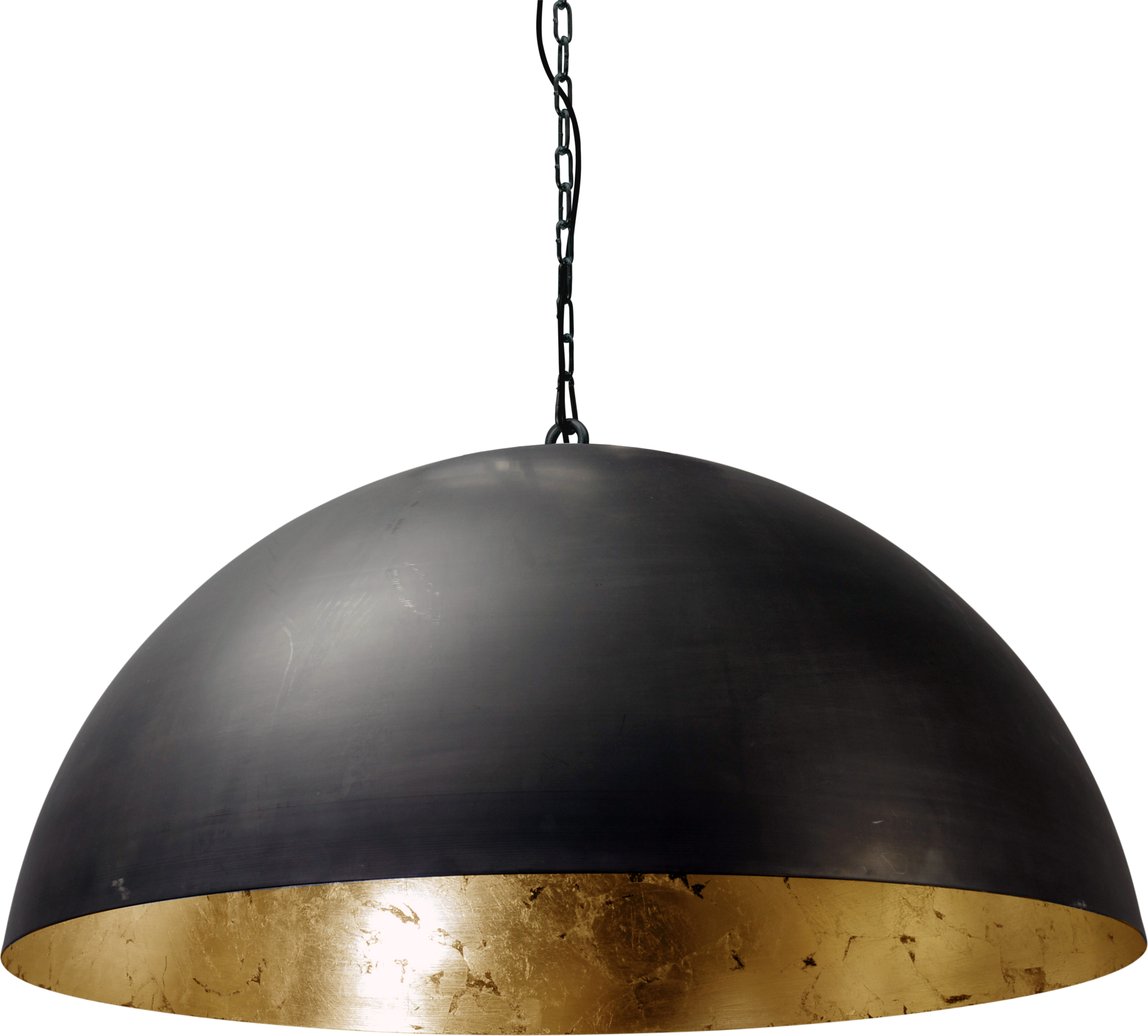 The sturdy metal Larino pendant lamp has a diameter of 50, 60, or 80 cm. It features a black/gunmetal exterior and a gold-leaf interior, making it truly unique. Even when lit, the gold leaf creates a beautiful warm glow through the interior, creating a warm ambiance. The black shade is 35 cm high.