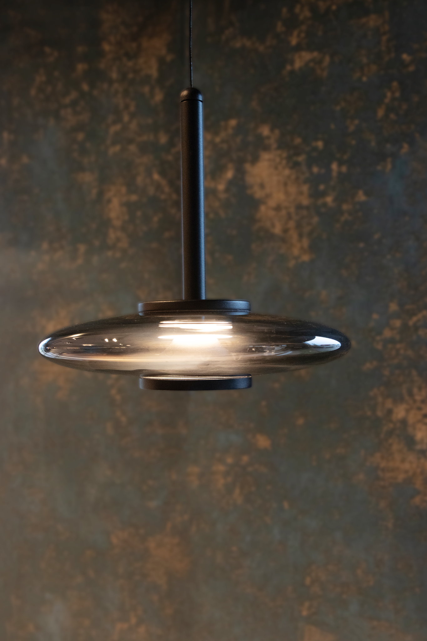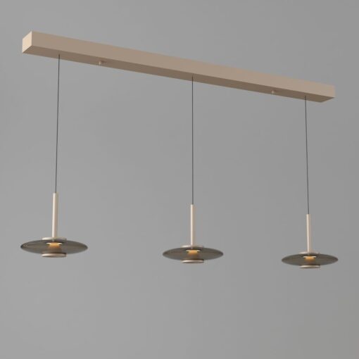 The stunning Madison 3-light pendant lamp features a 130 x 9 cm beam and three glass panes with a 22 cm diameter. The lamp is equipped with integrated 3 x 11-watt LEDs. It is 200 cm tall. Adjustable height (80-200 cm) via a pulley system.