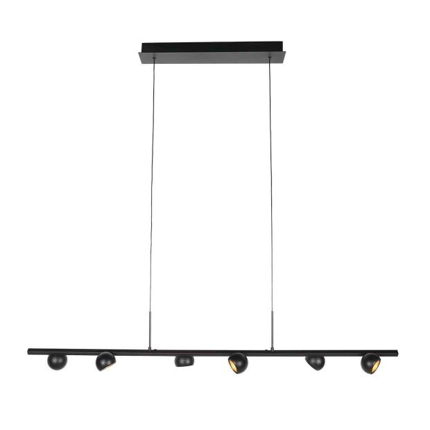 Modern Marcadore pendant lamp, 6 x 5 watt LED. The pendant lamp features 6 rotating reflector balls, allowing you to direct the light exactly where you need it. This unique design creates a dynamic and modern look while also providing practical lighting. The lamp is easily height-adjustable between 90 and 140 cm, allowing you to create the perfect arrangement to suit your interior.