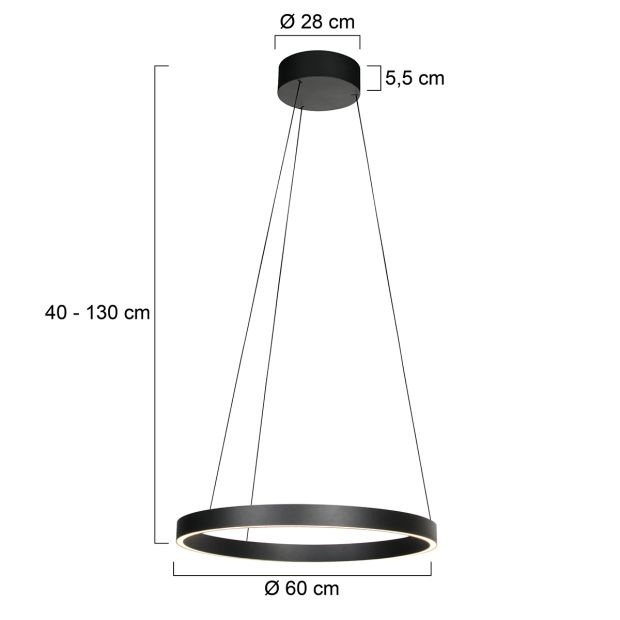 The Mykty round pendant lamp, with a refined matte black finish, offers both top and bottom LED lighting for a perfectly balanced light. Thanks to the Cable Lift function, you can easily adjust the lamp's height from 40 cm to over 130 cm , ideal for various interiors and ceiling heights.