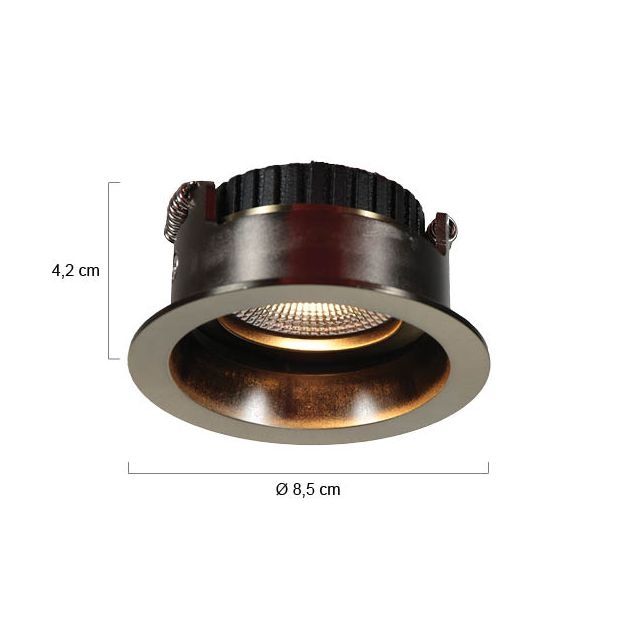 The Pelite 4705 recessed spotlight combines sleek design with ease of use and high-quality light. The steel-colored finish in various colors and the recessed light source ensure a calm lighting experience without glare. The inner part is fully rotatable and tiltable, ideal for both accent and general lighting. The spotlight features two light modes: dim to warm (2200–2700K) for a warm atmosphere and 3000K for bright functional light. The replaceable 6-watt LED delivers up to 540 lumens in a compact fixture. With a mounting width of 68–75 mm, a low installation height of 42 mm, and simple connection, this spotlight is suitable for virtually any ceiling.