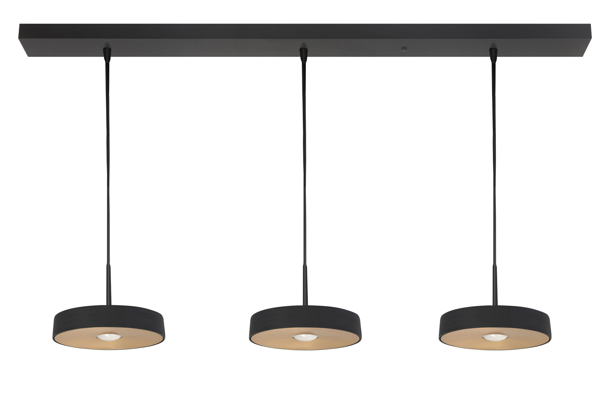 Beautiful Bright black and gold pendant lamp. This pendant lamp has a 120 cm beam. 20-watt integrated LED per bulb, for a total of 60 watts. Dimmable with an external dimmer (not included).