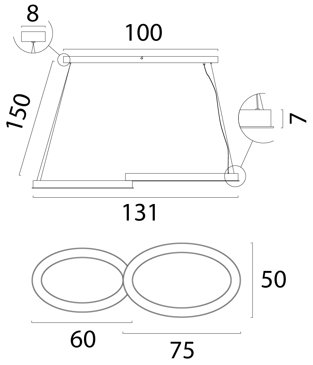 Masterlight pendant lamp Ellisse gold leaf, with 2 rings of 60 and 75 cm diameter. Read more