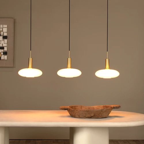 Singala pendant lamp, 3 lights, matt gold with white glass Read more