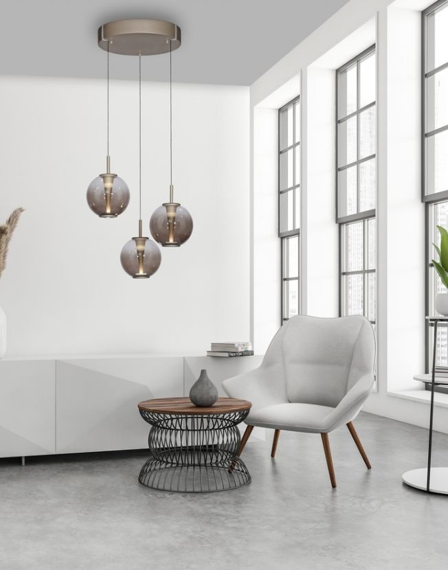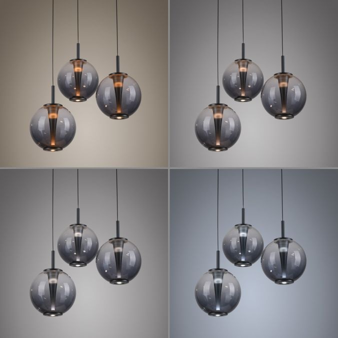 The Paul Neuhaus round PURE E-Infinity pendant lamp combines an elegant bronze design with amber glass shades for a warm and atmospheric lighting experience. Thanks to the three powerful LED modules and the CCT function, the light color can be easily adjusted from warm white (2200K) to bright daylight (5000K) with the included remote control. The lamp is infinitely dimmable, has a memory function, and is both height-adjustable and electrically extendable thanks to the innovative e-SLIDE® function. With a high color rendering (CRI ≥90), this lamp provides natural and comfortable light – perfect above the dining table, kitchen island, or in the living room.