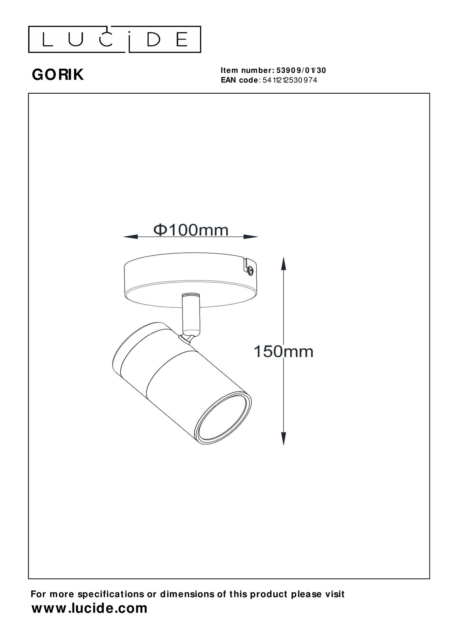 This is a modern ceiling spot Gorik 1 light, with a black and gold design. The spot has a round black ceiling plate with adjustable spot, so that the light beam can be directed as desired. The combination of black and gold provides a luxurious and stylish look that fits well in both modern and industrial interiors. The length is 28 cm with spots on it, which can be rotated 360 degrees around and tilted. Suitable for 1 x GU10 LED lamps (excl.) Mounting plate lxwxh10 cm x 10 cm x 2.5 cm