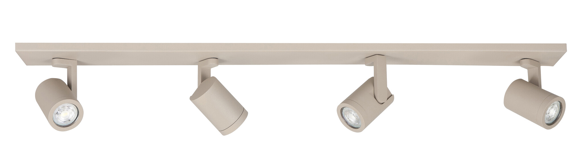 The Halo spotlight is a 4-light fixture available in white, black, black bronze, or stainless steel. This high-quality spotlight is suitable for LED bulbs with a GU10 fitting. It can be swiveled and tilted (not included). It measures 91.5 cm x 9.5 cm, ensuring a snug fit over the light fixture.