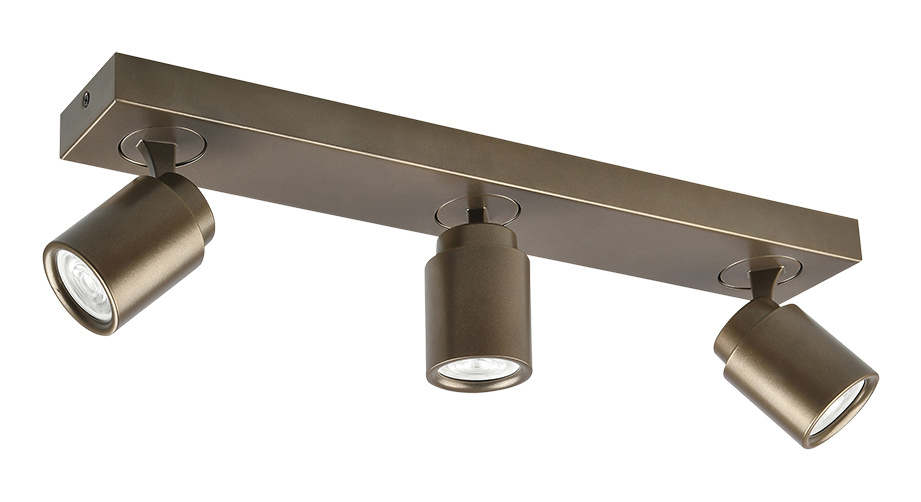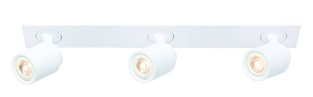 The Razza spotlight has three lights in cream, white, or bronze. It comes without a GU10 bulb. Length: 54 cm x width: 8 cm.
