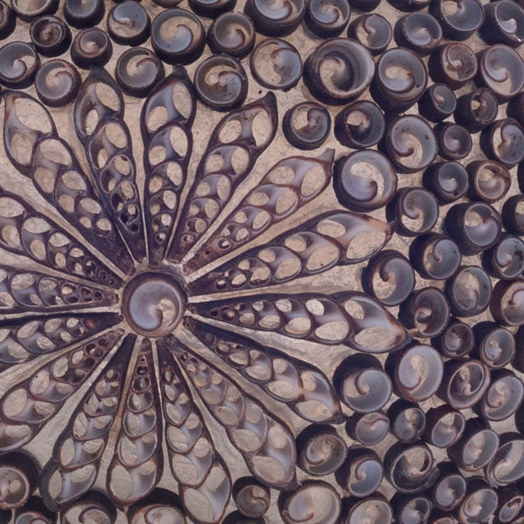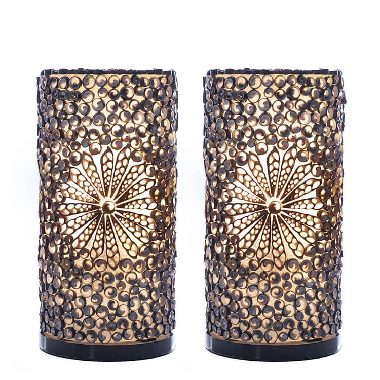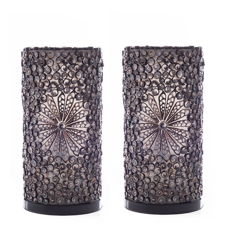 Dili black cylinder table lamp made of small, cut shells on a fiberglass mold, handmade. Height 30 cm. Set of 2. Suitable for LED bulbs. Recommended light source: LED bulb E14 candle.
