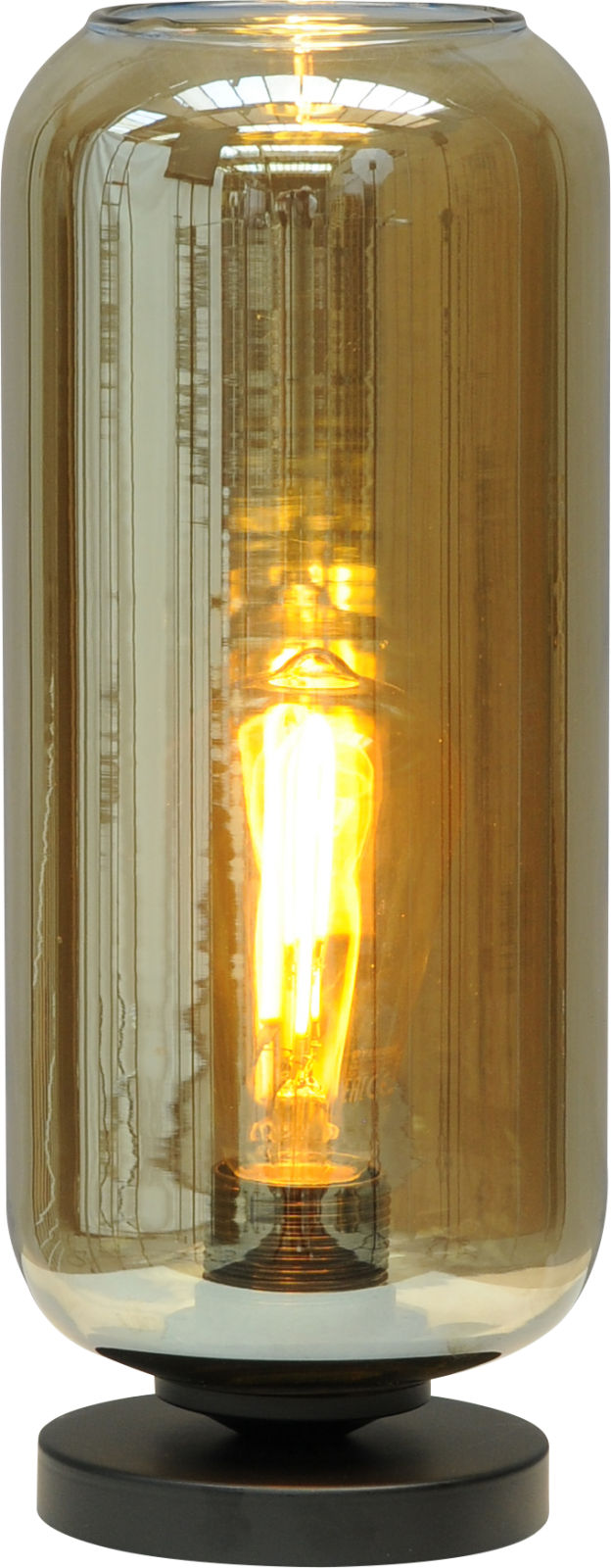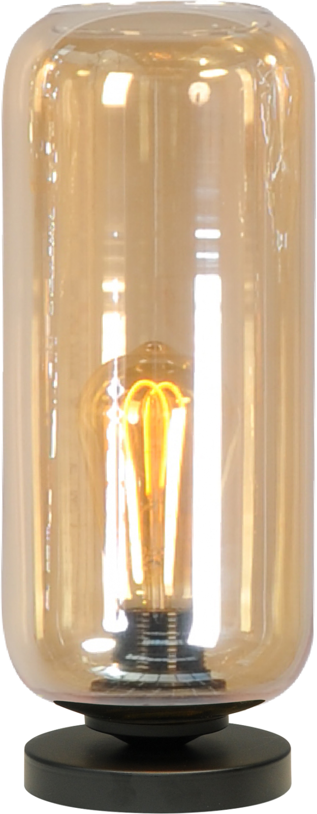 Quinto table lamp, a black round base with smoked or amber glass. Choose from various glass models. Read more