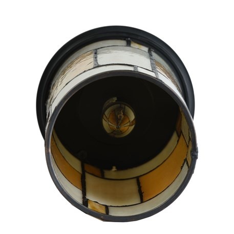 This round Tiffany table lamp, with its rounded shade, creates a beautiful and atmospheric light. The glass is colored in sultry orange and yellow, creating an extra warm and sunny ambiance. Suitable for an LED bulb with an E14 socket. Height: 25 cm. Base diameter: 15 cm.