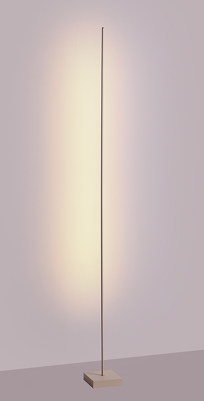 This sleek, subtle Think floor lamp is 179 cm tall. It features 15 x 1-watt LEDs distributed across the entire height. The base measures 15 x 15 x 4 cm. Dimmable from the top of the lamp. It has a 2700 Kelvin temperature. This lamp is ideal for indirect lighting. You'll be amazed by the beautiful effect this lamp creates, creating an atmospheric light through the wall.