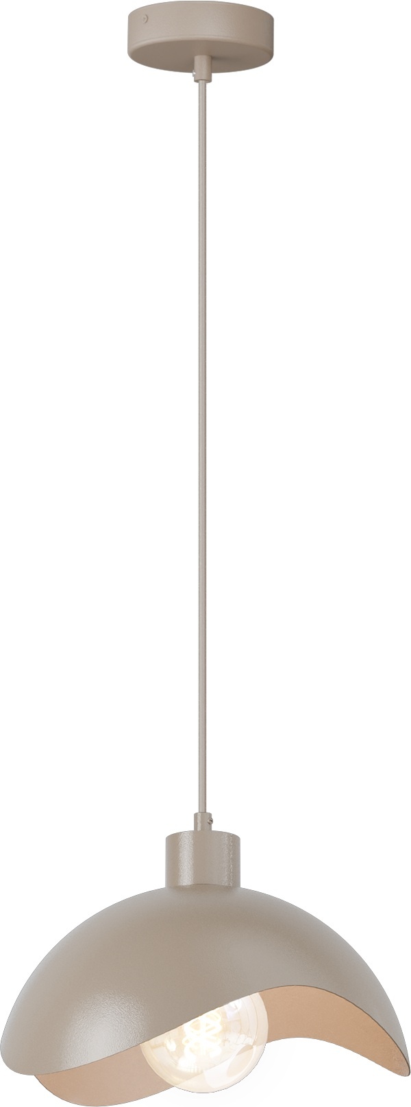 A beautifully designed single-light pendant lamp from the Volta series, available in various colors. Made of metal, it features a semicircular shade with recesses along the curve. Diameter: 30 cm.