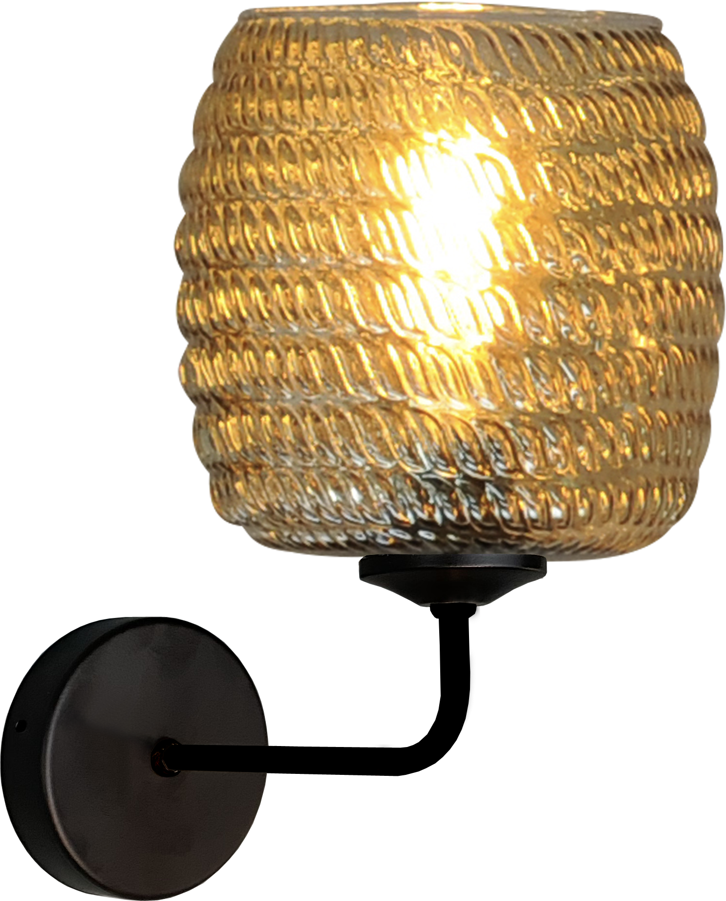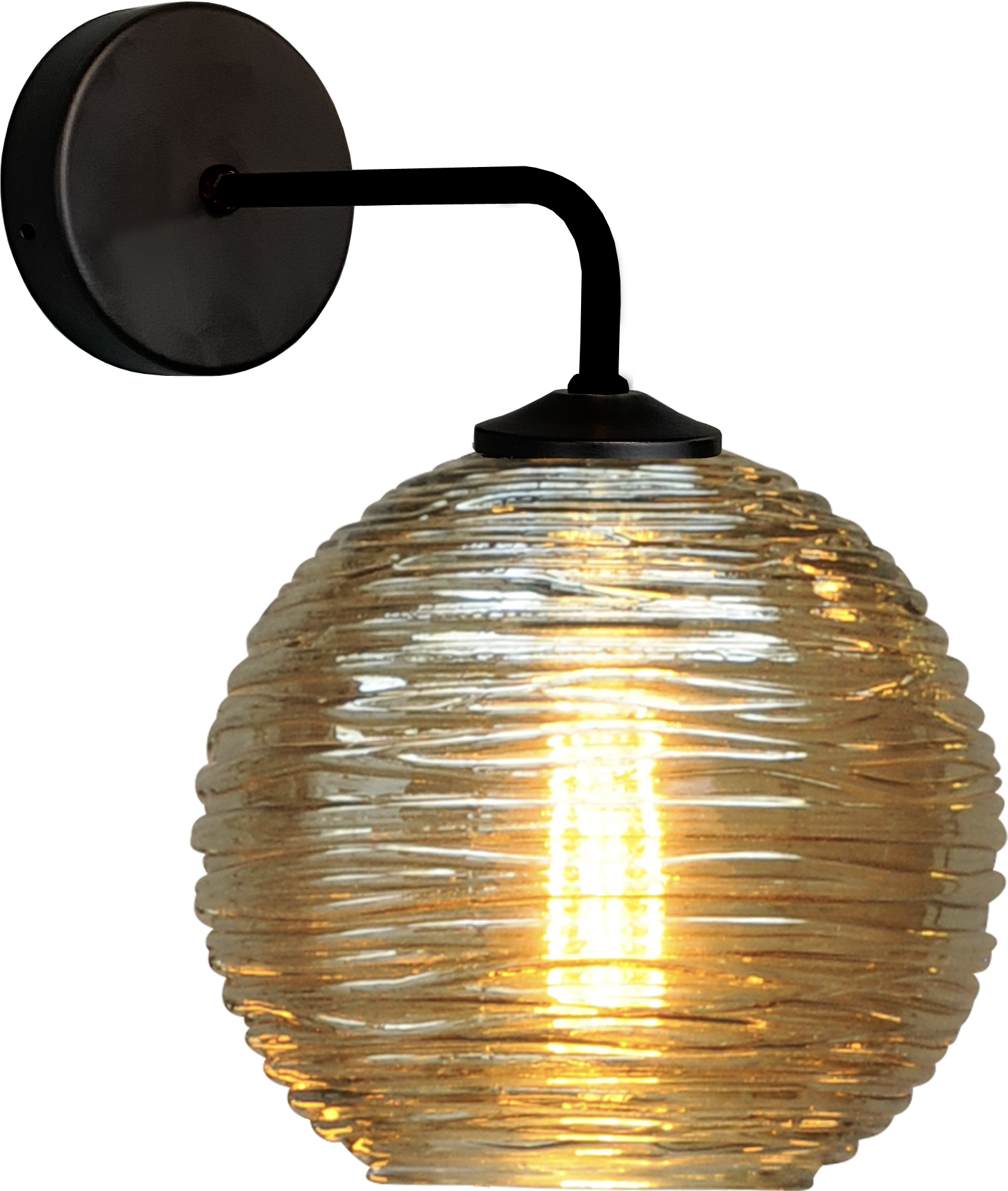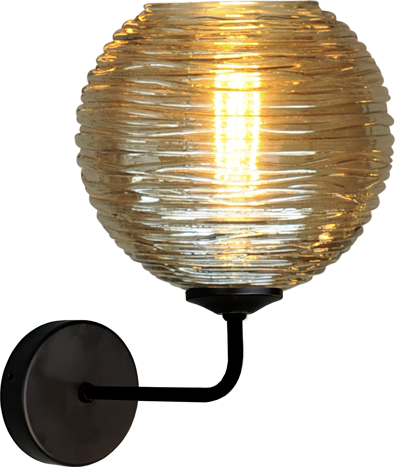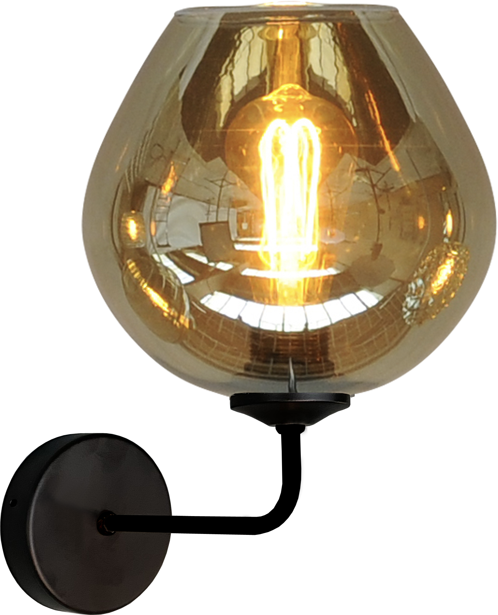 From the Quinto series, a black wall lamp, attached to a round metal wall plate and a smoked glass ball. Glass can be hung up or down. Depth 30 cm.