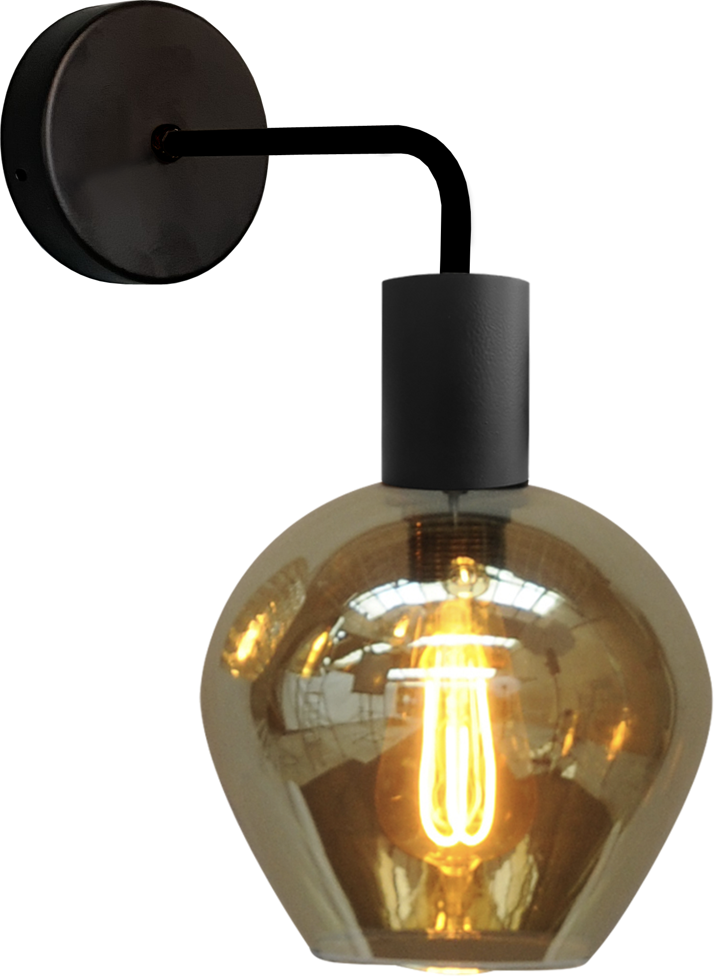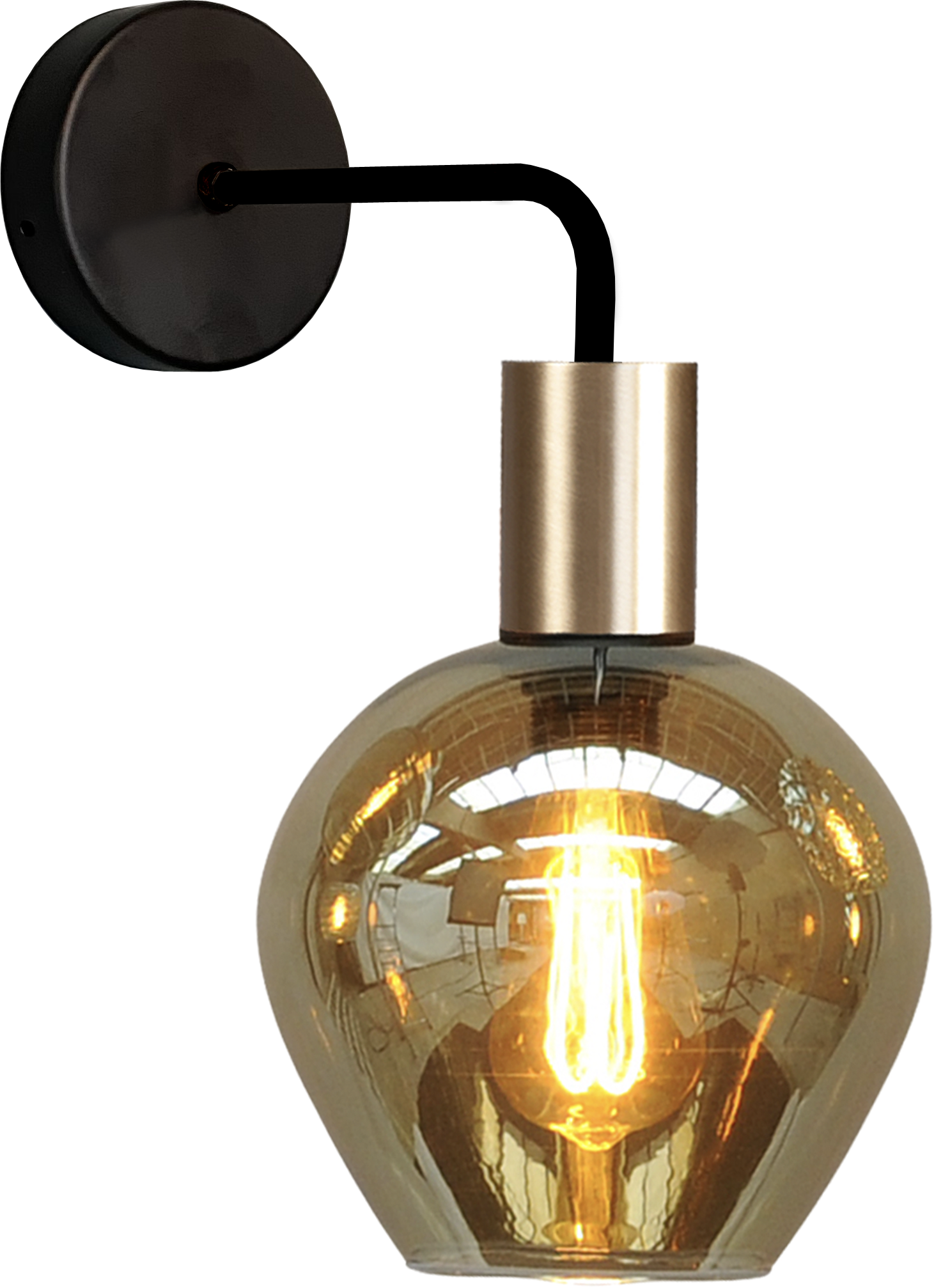 This beautifully finished wall lamp is available in either black or black with a matte gold fitting. A smoked glass pendant with a diameter of 19 cm hangs down from the lamp. It is 38 cm high and suitable for an LED bulb with an E27 fitting. It is 29.5 cm deep.