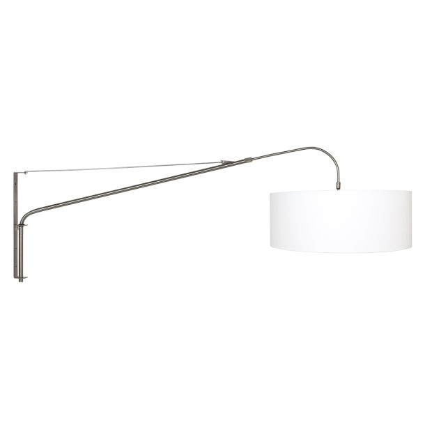 Stainless steel wall lamp for on the wall is extendable from 90 -120 cm. In or excluding a beautiful fabric velvet-like hood (white hood is linen fabric) with a diameter of 50 cm and 20 cm high. Including a cord with on / off switch incorporated. (cord length 180 cm) Loose fixture € 129.90
