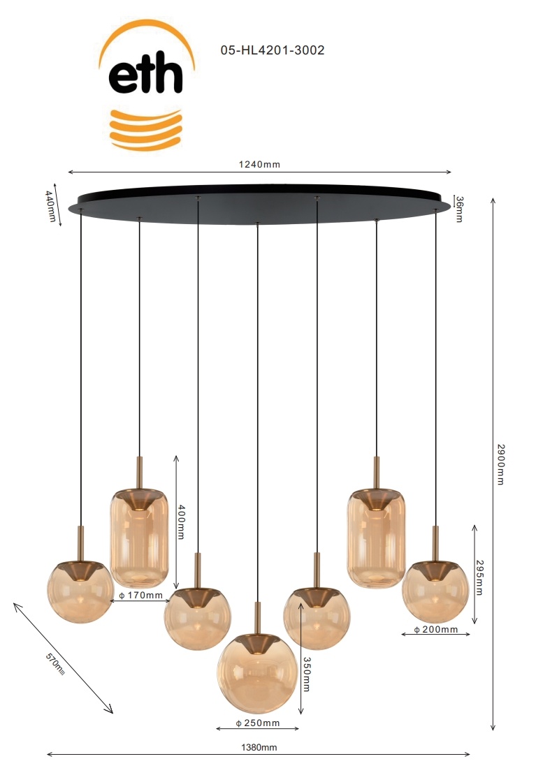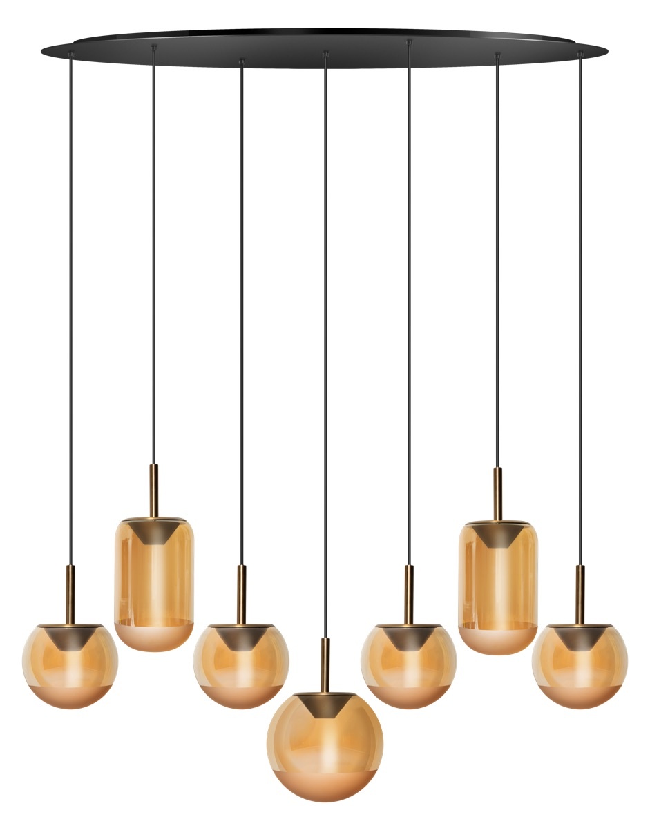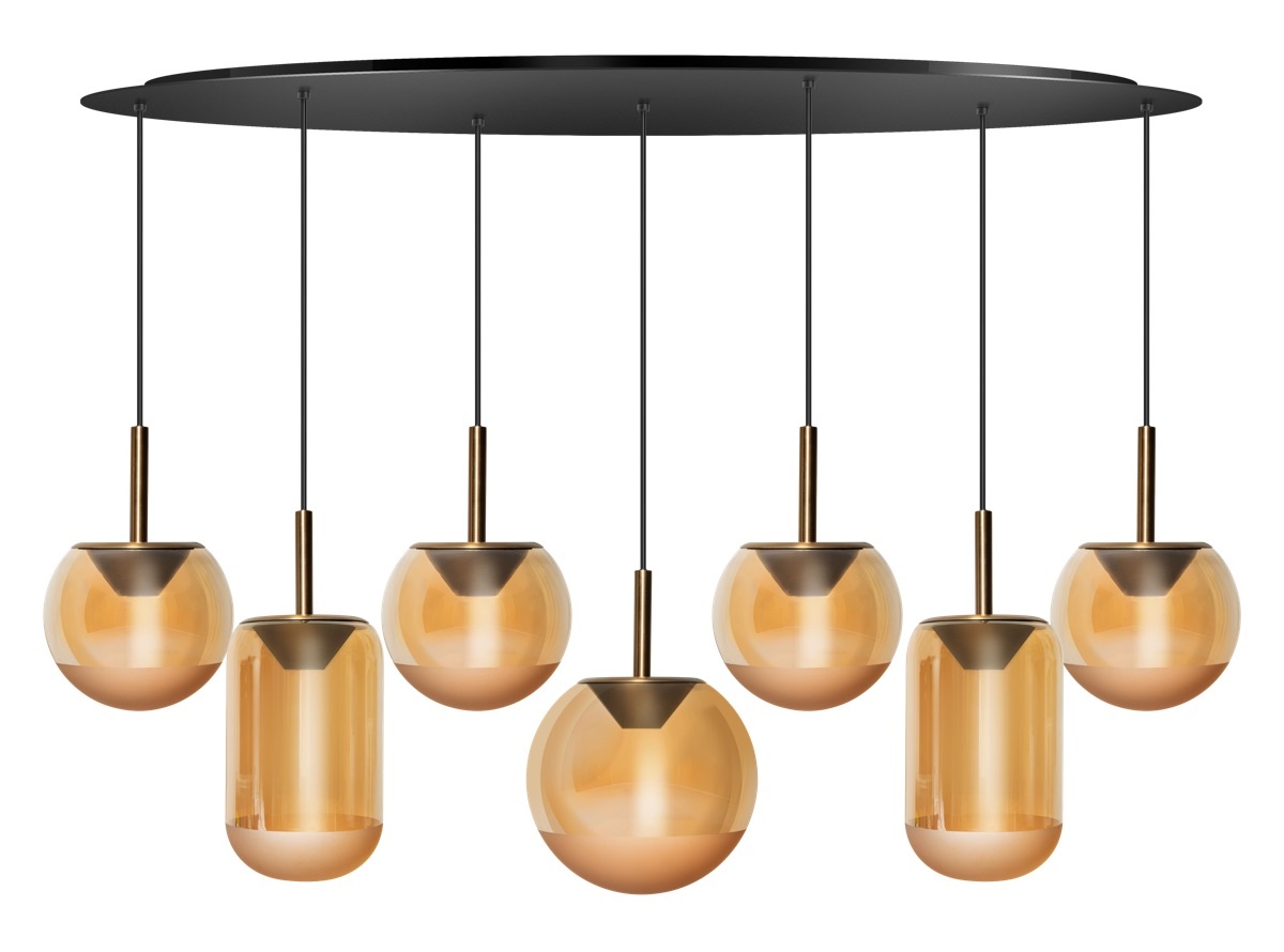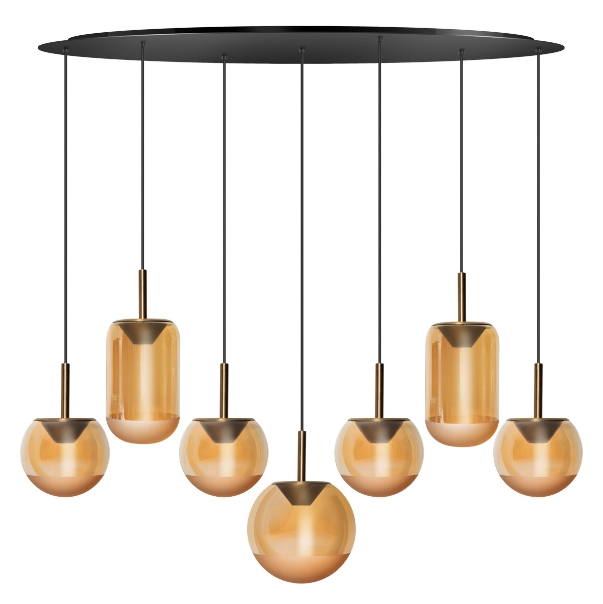 Yvonne oval pendant lamp, black with amber glass, 7-light version, 120 x 40 cm. Read more