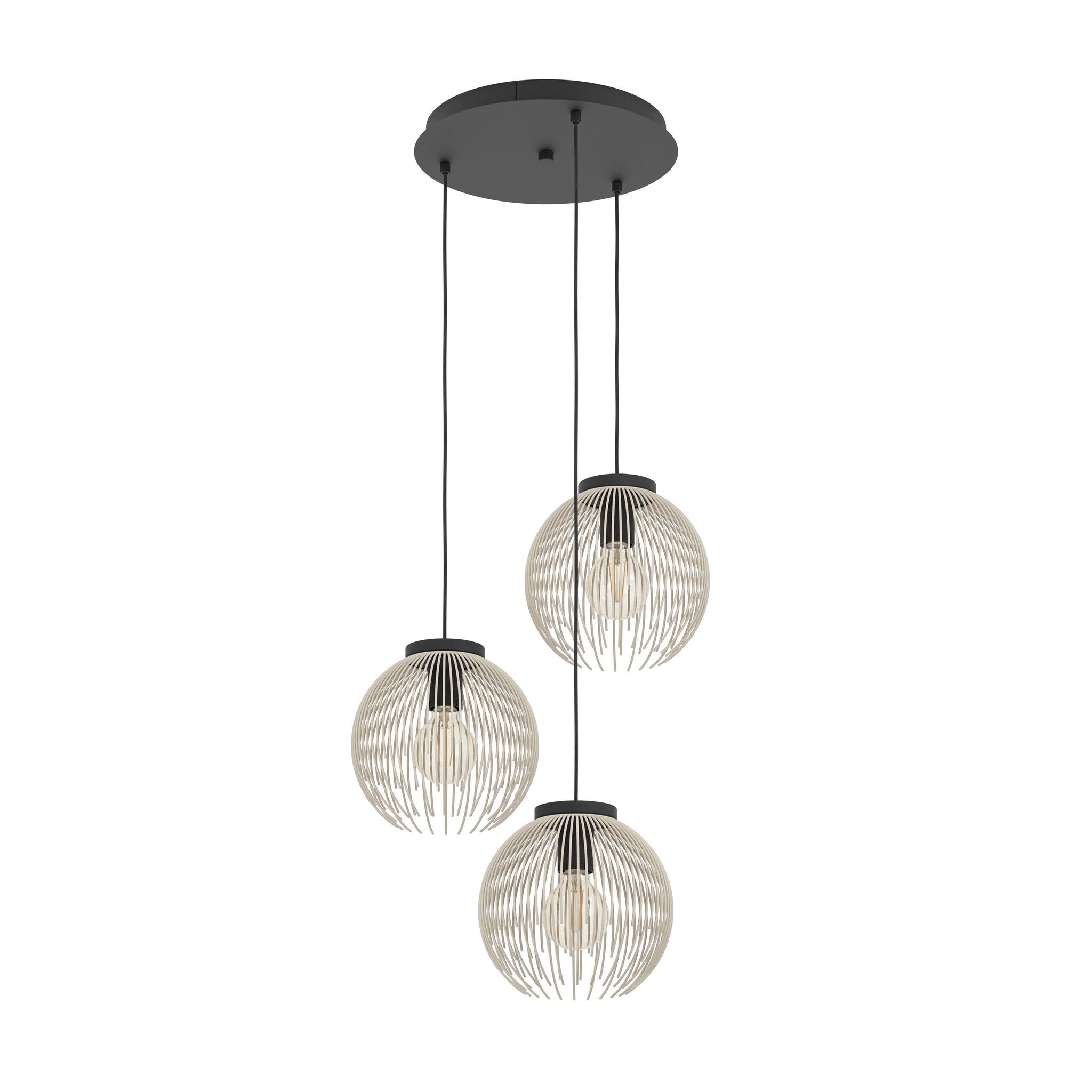 Hanglamp Alhabia van Eglo rond 3 lichts, zwart met crème. In winkel te zien. Lees meer