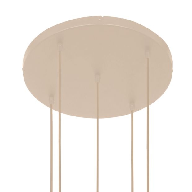 Hanglamp Bollique 5 bollen met witte glazen en een creme plafondplaat. Zeer geschikt voor ineen vide. Lees meer