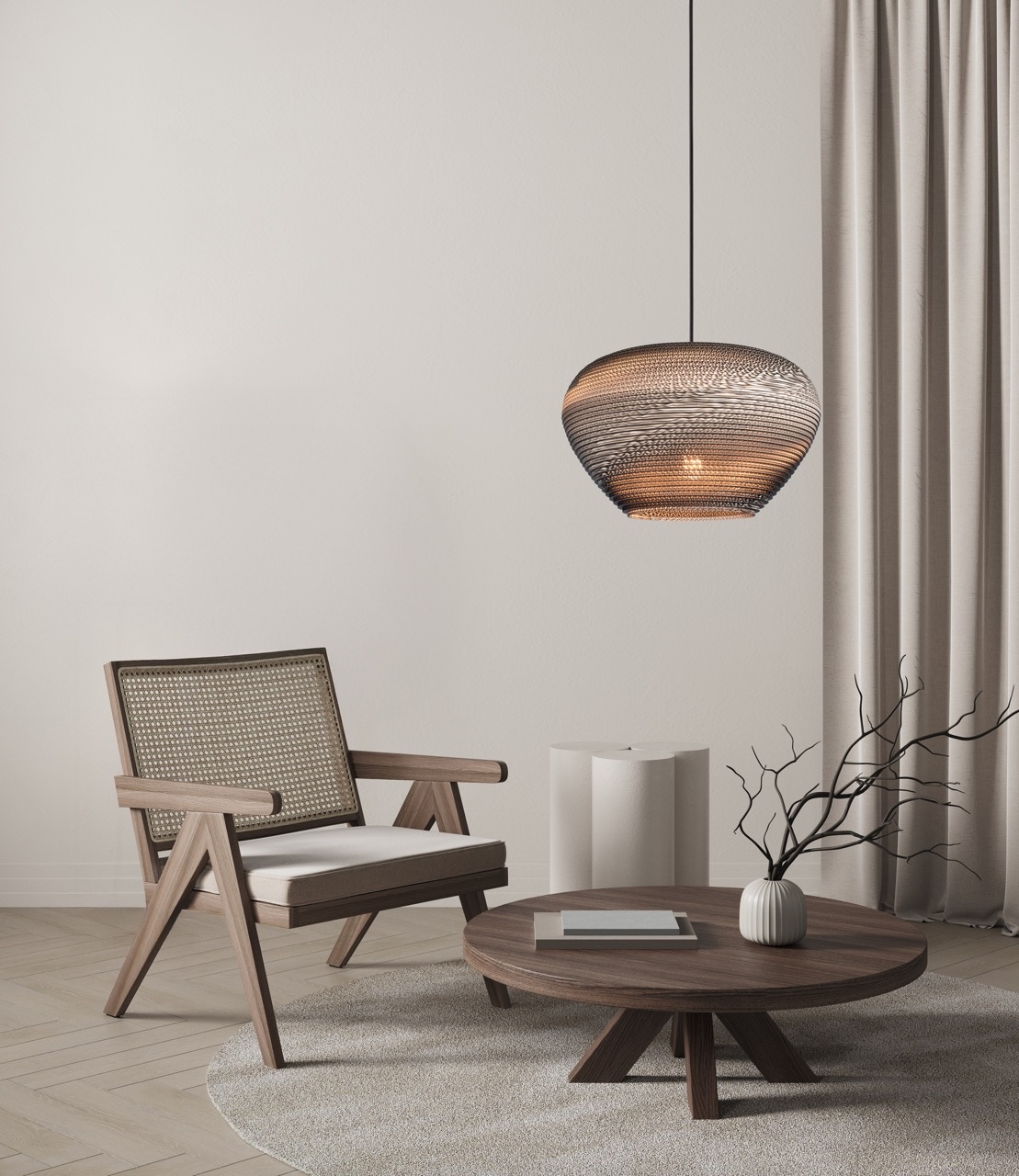 Laat je interieur spreken met de unieke hanglamp Cartone, gemaakt van geperst karton. Een zeer duurzame lamp met een exclusieve uitstraling.