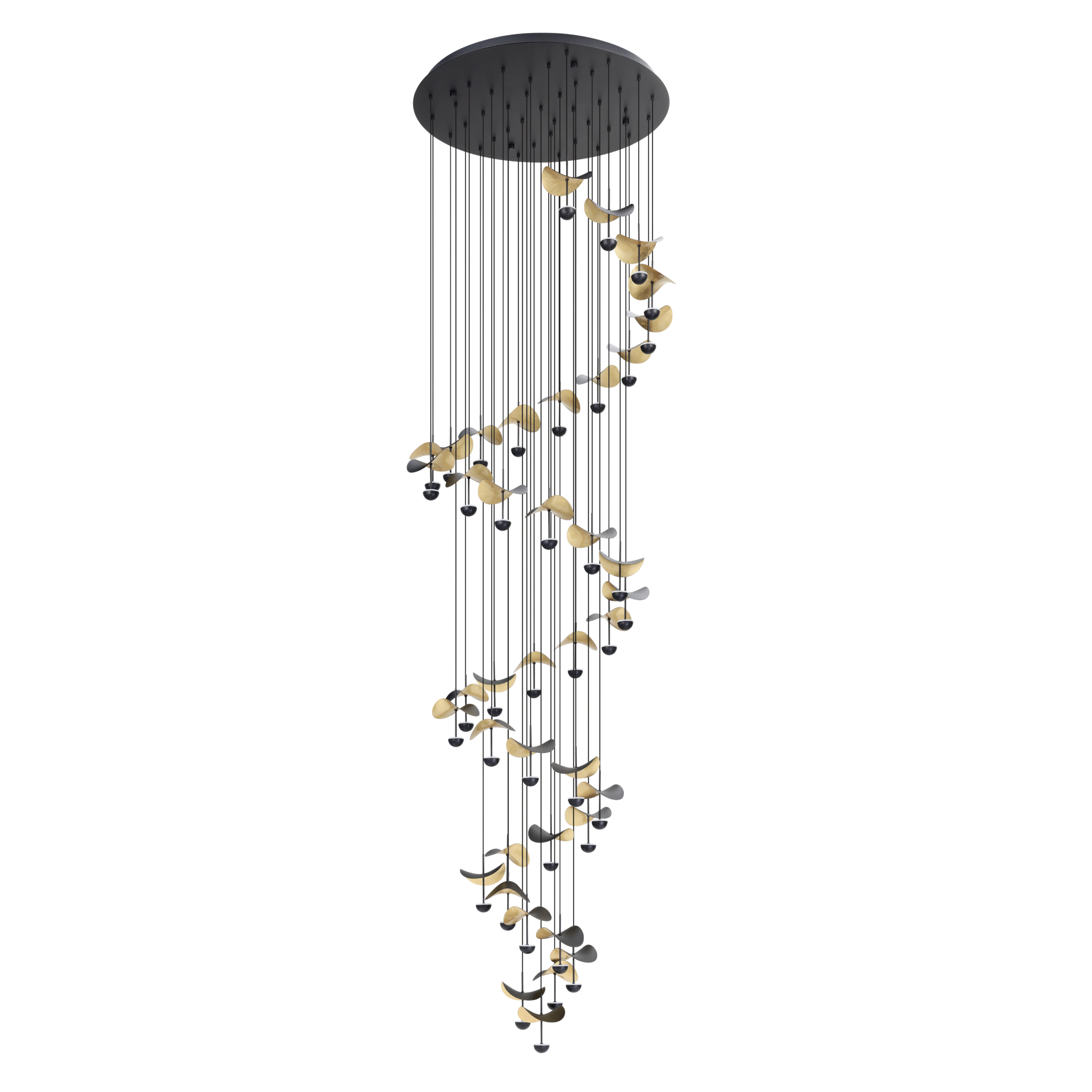 Design hanglamp rond zwart met 40 aparte lichtpunten Led in aparte vorm, geschikt voor een vide met een lengta van 300 cm. Lees meer